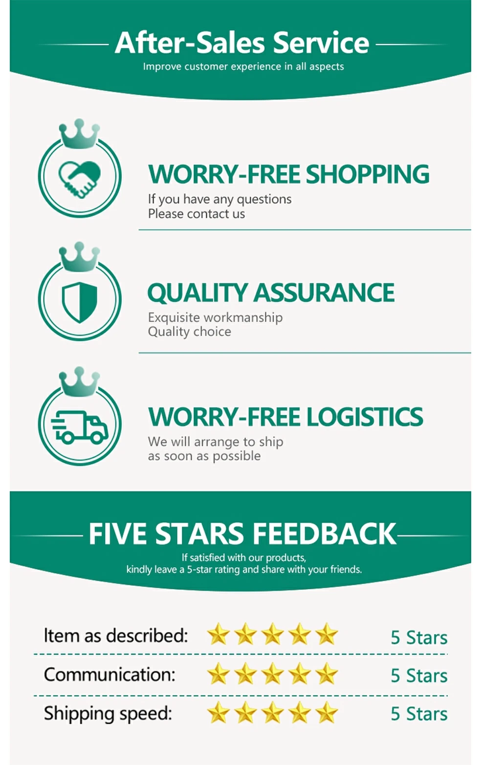 3. Пожалуйста, свяжитесь с нами, прежде чем оставить отрицательный или нейтральный отзывы. Мы будем работать с вами, чтобы решить любые проблемы.