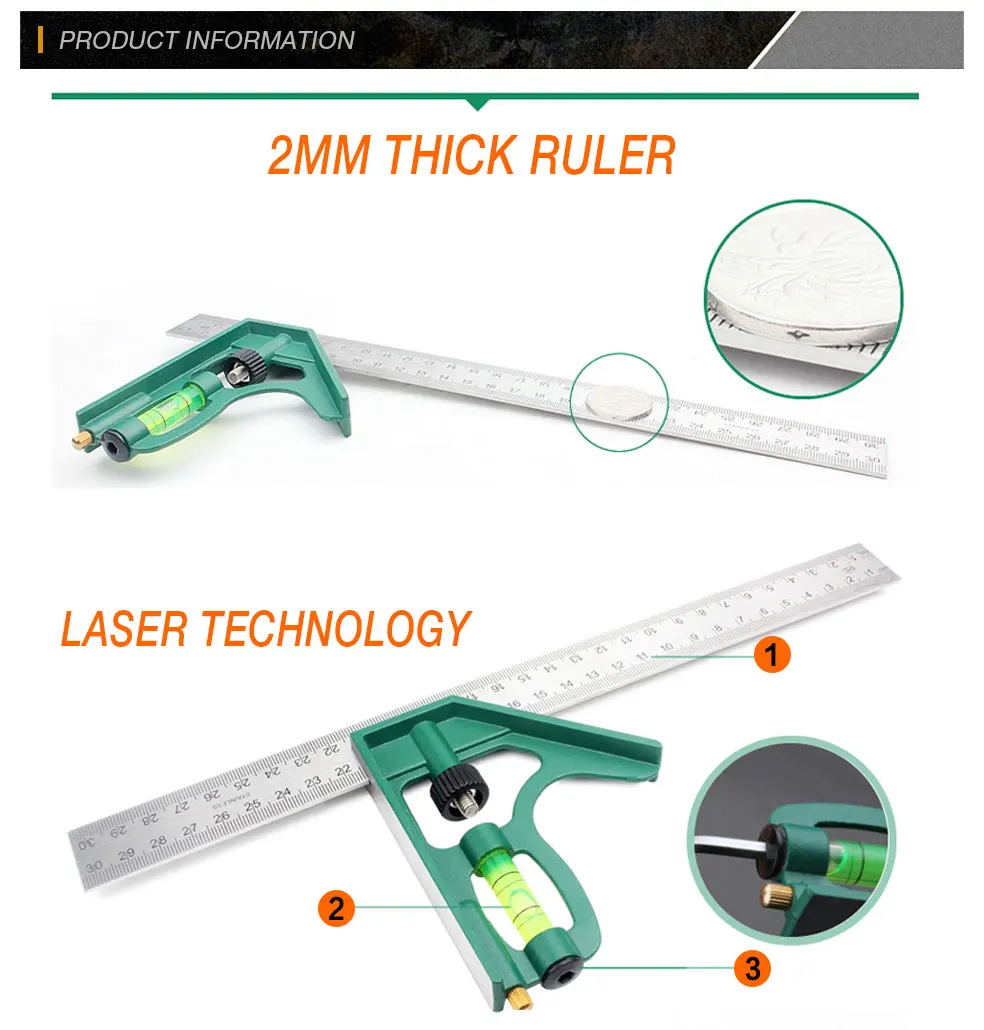 DIY точные измерительные инструменты из нержавеющей стали, алюминиевая комбинация, мобильная квадратная мастерская, аппаратный угол, уровень духов 12 "(300 мм)