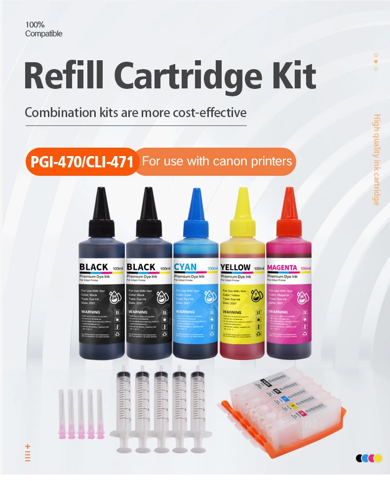 For Canon PGI470 CLI471 XL Refillable Ink Cartridges + 5 Bottles Ink
