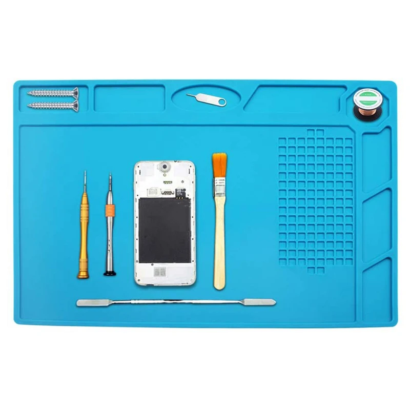 Высокотемпературная устойчивая изоляционная Прокладка: М ультра-Толстая силиконовая прокладка, сильная термостойкость, защита от ожогов и пламени, защита платформы, безопасный припой, даже горячее железо может быть помещено непосредственно на коврик.