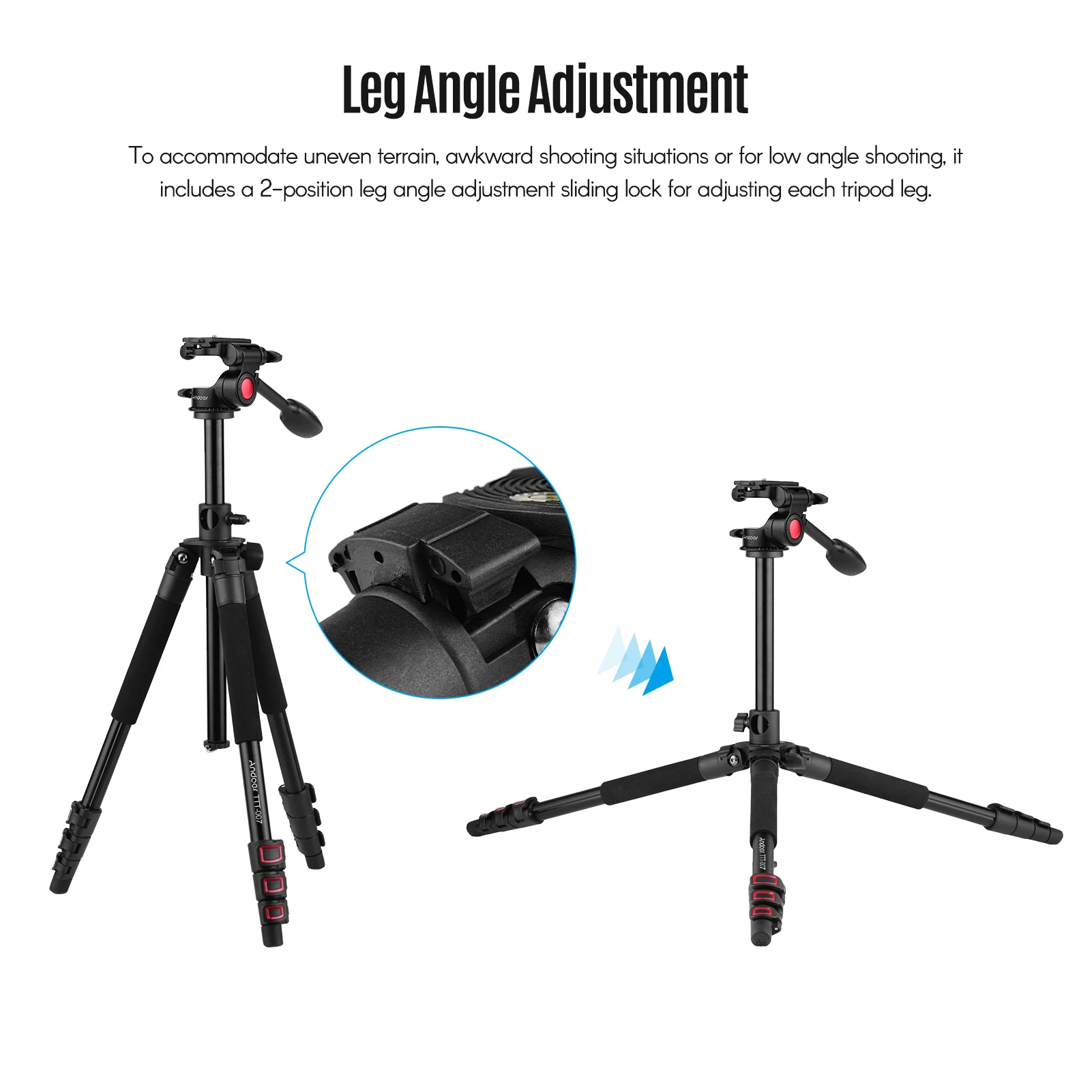Для проведения конференц-связи на неровной поверхности, неловких ситуаций съемки или для съемки с низким углом, она включает в себя 2-положение ноги Регулировка угла скользящей застежкой для регулировки каждой Ножки штатива.