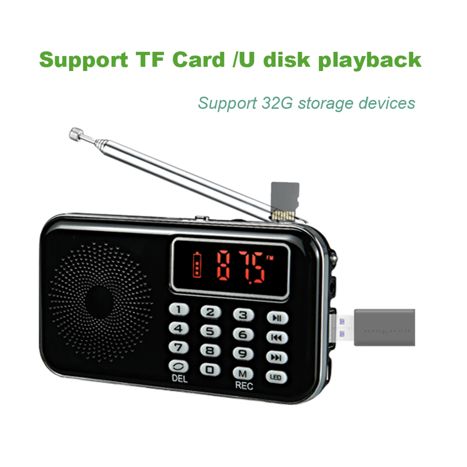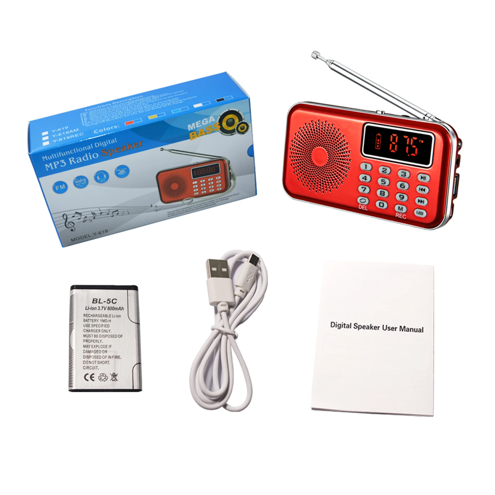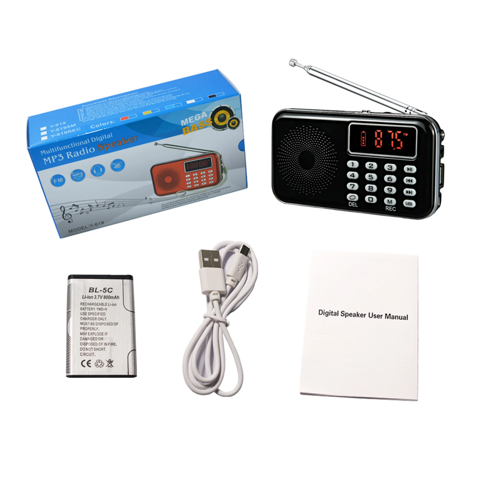 Y-619 мини-fm-радио-динамик специально разработан для людей, которые могут свободно слушать радио, погоду и новости дома. Громкий звук и высокое качество звука позволяют наслаждаться любимой музыкой в любое время и в любом месте. Это действительно круто и модно, чтобы наслаждаться музыкой с этим многофункциональным стереоцифровым динамиком.