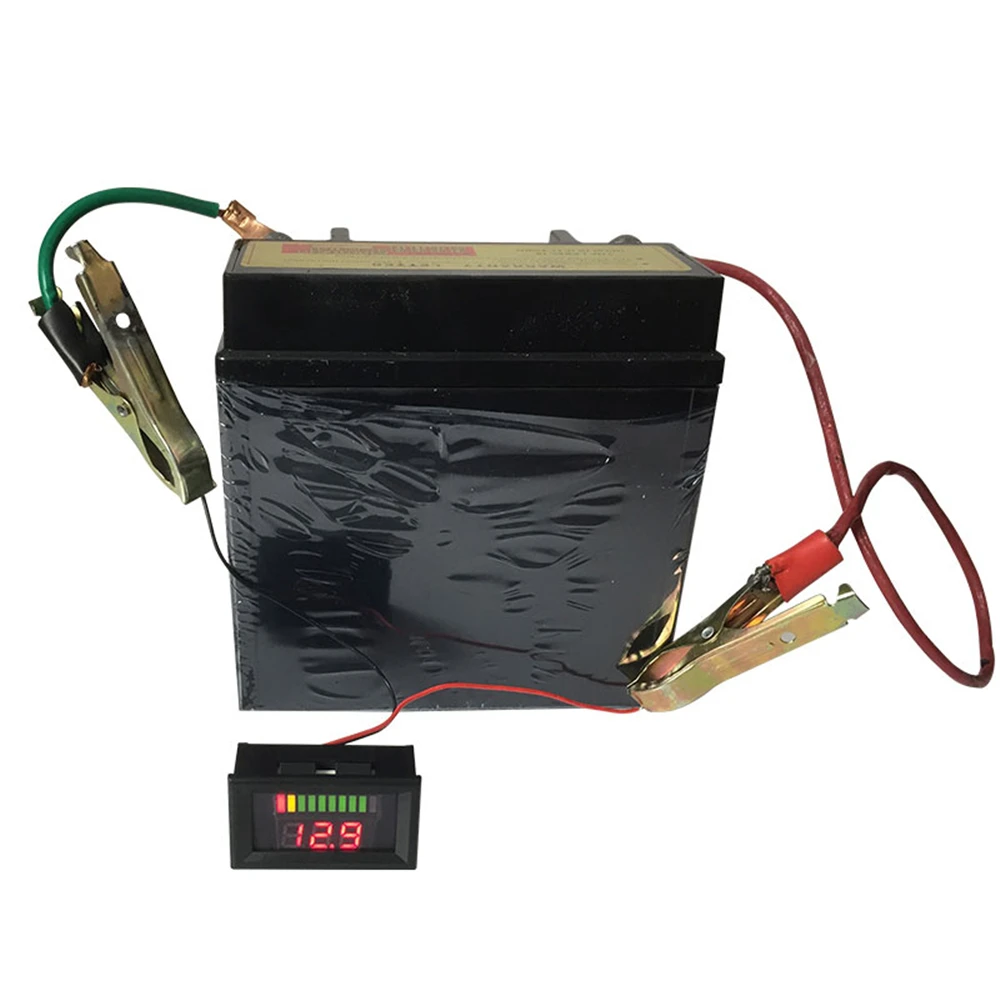 Размер монтажного отверстия: 46x27 мм Размер: 48x29x22мм Класс точности: +/- 1% Разрешение мощности: 10% 25% 40% 50% 60% 75% 90% 100% Напряжение: 12 ~ 60 в/72 в Рабочий ток: 5 ~ 15 мА Частота обновления: 300 мс/время Дисплей Тип: 3 Бит ЖК-дисплей цифровой Рабочая влажность: 10 ~ 80% Рабочая температура: -10 ~ 65 ℃ Цвет: красный/синий Длина кабеля: 15 ~ 20 см