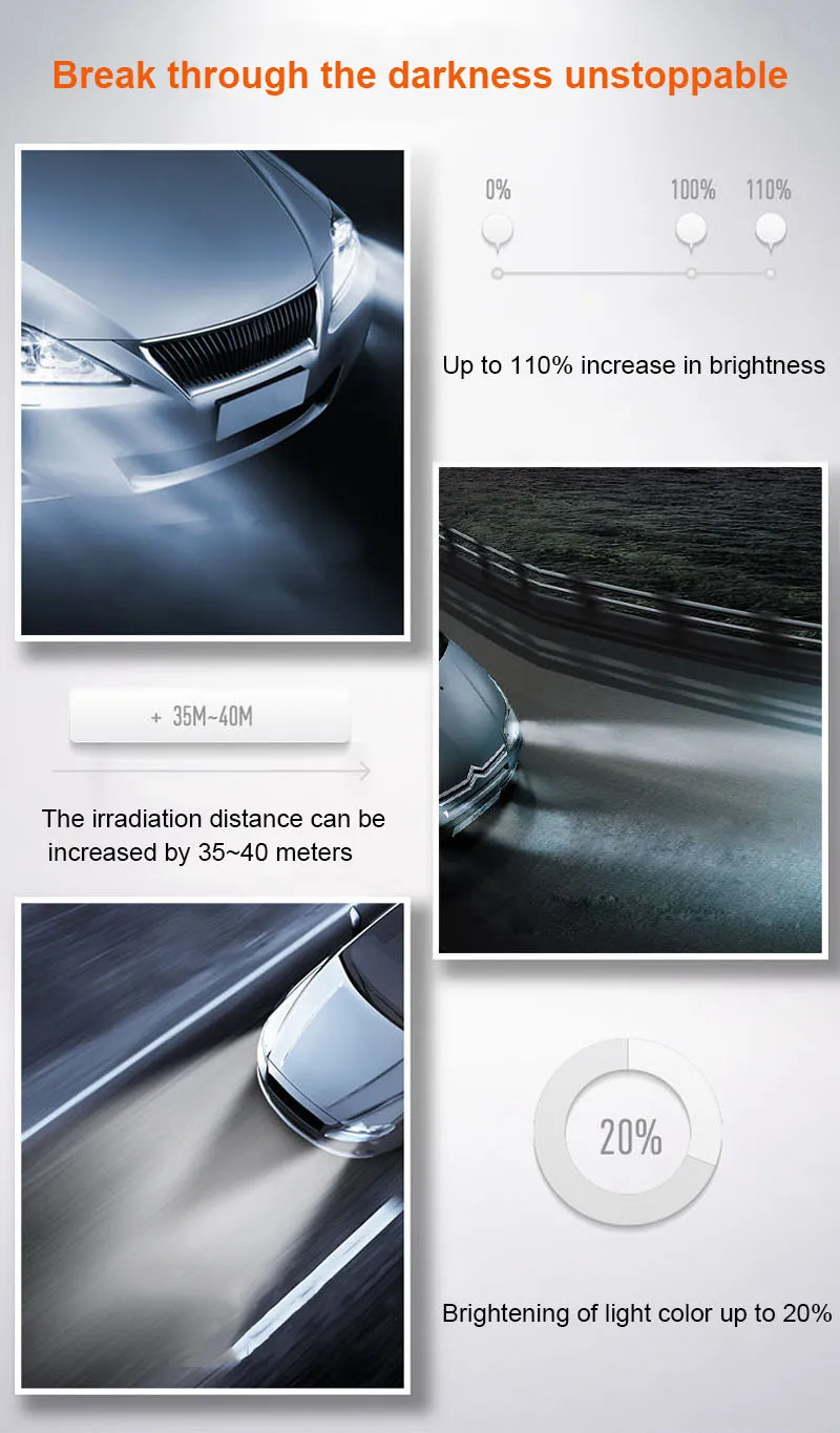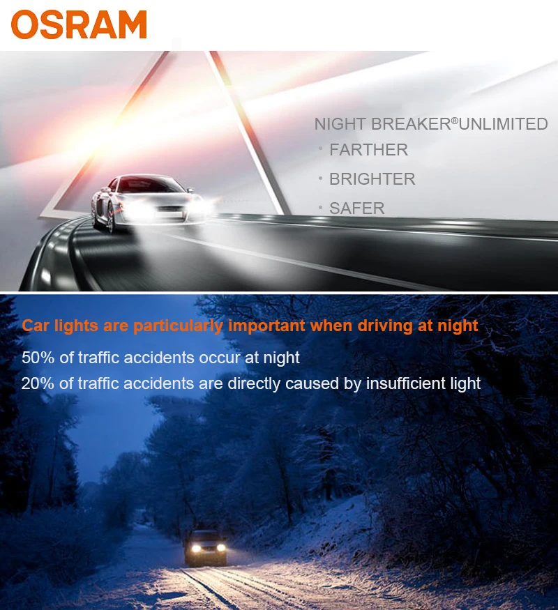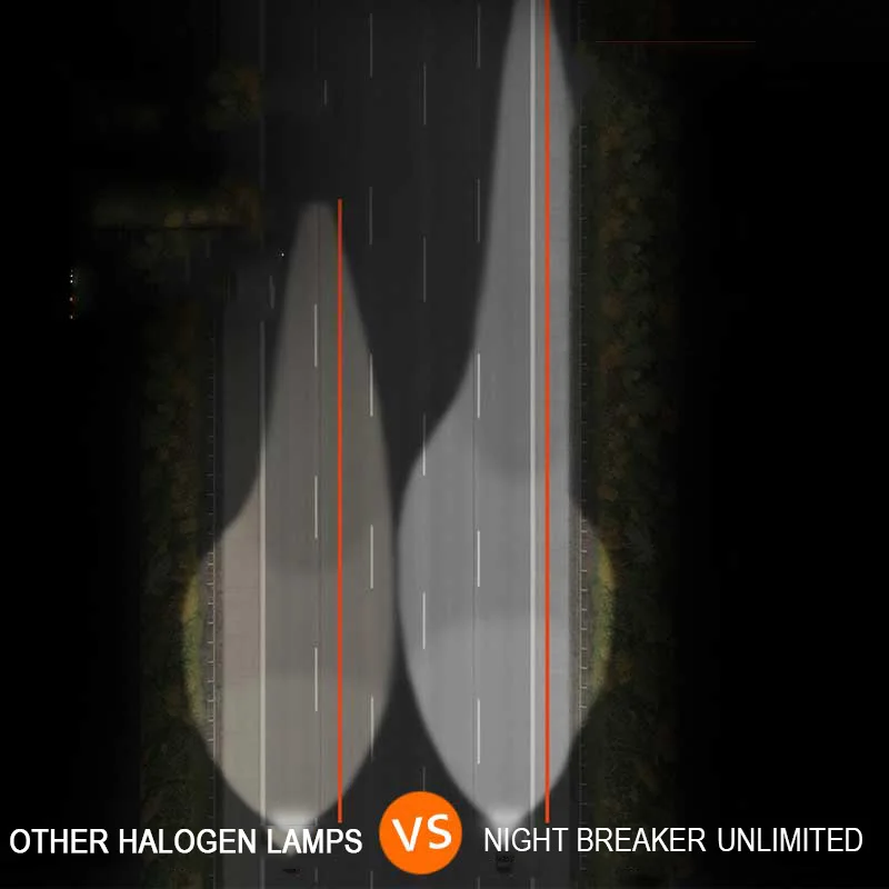 Неограниченное количество галогенных ламп Osram Night Breaker обеспечивает на 100% больше света и 35-40 м лучей светильник и до 20% белее света, чем стандартные галогенные лампы. Из-за улучшенного качества и видимости, водитель сможет быстрее определить любые препятствия на дороге, что означает, что у вас есть больше времени, чтобы реагировать на вашу безопасность.