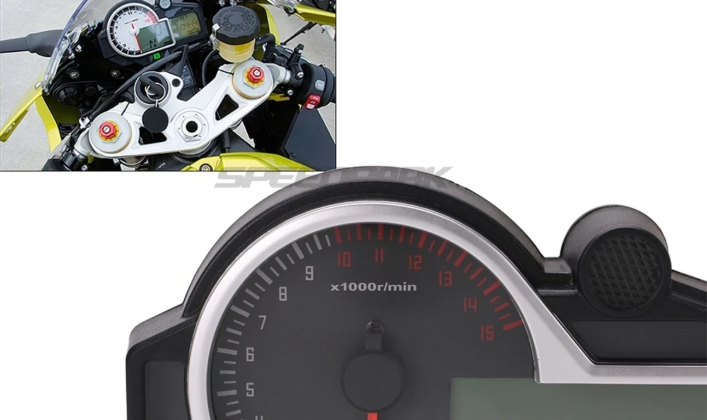 Это модифицированный спидометр, подходящий для большинства мотоциклов 2,4 цилиндра
