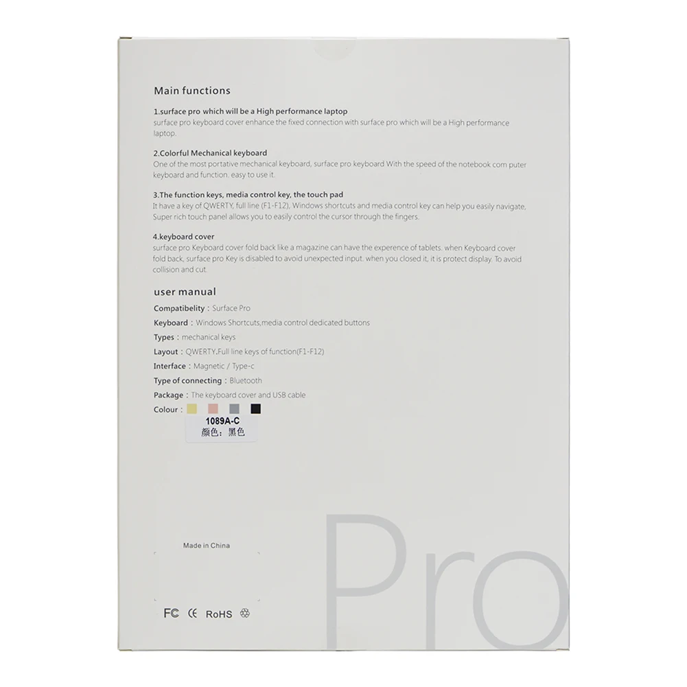 Характеристика: 1. Ультра-тонкий и легкий 4 мм стиль, лучше, чем оригинал, легко носить с собой 2. Bluetooth-Совместимость 3,0 Беспроводная быстрая связь, полимерный аккумулятор долгое время ожидания, сильная Магнитная Адсорбция, удобная кнопка 3. Четырехкратный дизайн ободка обеспечивает ежедневную защиту экрана 4. Удобные, дышащие и рассеивающие тепло, не жарко в течение длительного времени Характеристики: Модель планшета: для Surface Pro 3/4/5/6/7 Совместимый с Bluetooth стандартный интерфейс 3,0 Эффективное рабочее расстояние: 10 метров Модуляция: GFSK Рабочее напряжение: 3,0-4,2 V Рабочий ток: <8 мА (когда Сенсорная панель работает) Ток в режиме ожидания: <0.3ма Ток сна: <40uA Ток зарядки: 100 мА Время работы в режиме ожидания: более 100 дней Время зарядки: 2-3 часа Емкость литиевой батареи: 220 мАч Непрерывное рабочее время: 100 часов Срок службы литиевой батареи: 3 года Сила нажатия: 80 ± 10 г Срок службы: 5 миллионов кликов Рабочая температура: -10 ~ + 55 ℃ Интерфейс зарядки: type-c Цвет: черный Размер: 295*220*5 мм/11,61*8,66*0,19 дюймов Примечания: Возможны отклонения в 1-3 мм вследствие измерений вручную. Из-за различных дисплеев и различного светильник, изображение может не показать фактический цвет товара. Спасибо за понимание. 1 кабель для передачи данных
