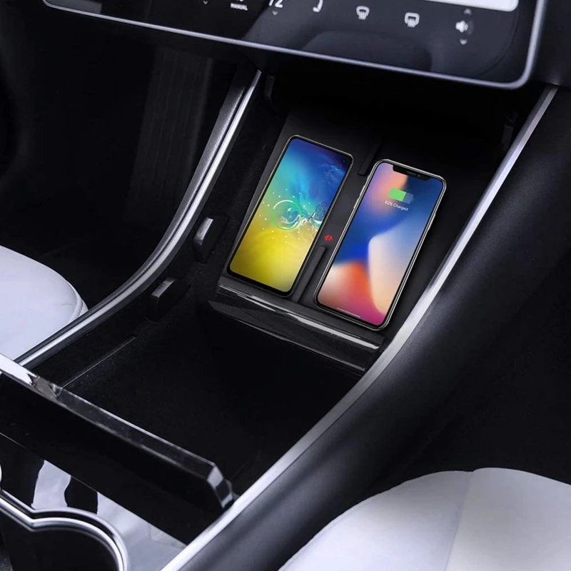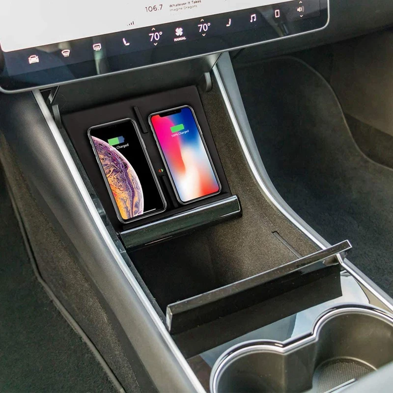 Автомобильное беспроводное зарядное устройство 10 Вт для Tesla Model 3, зарядная площадка для центральной консоли с двумя USB-портами, зарядное устройство для двух моделей