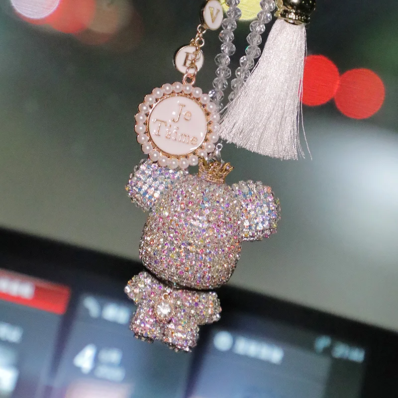 Модный Стайлинг Хрустальный мультяшный мрачный медведь автомобильные подвесные украшения стразы кисточки подвеска зеркало заднего вида автомобильное украшение
