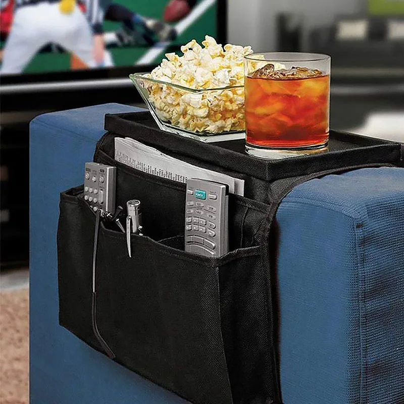 Он имеет большой карман для журналов, книг и 3 маленьких кармана для пульта дистанционного управления ТВ, наушники, стекло для чтения, а также верхний чехол для чашек или планшетов и т. Д.