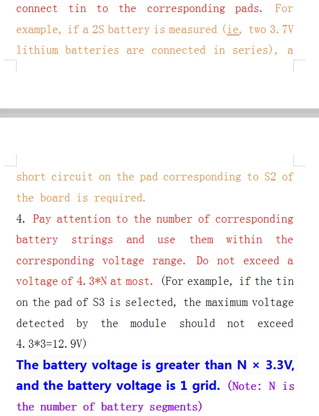 1. Когда напряжение аккумулятора превышает N * 3,3 В, он будет освещать 1 блок электричества