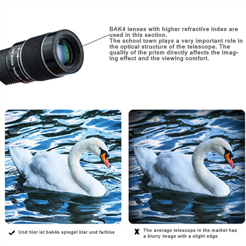 С улучшенной совместимостью, сочетанием оптического стеклянного покрытия и призмой BK4, он имеет хороший светильник.