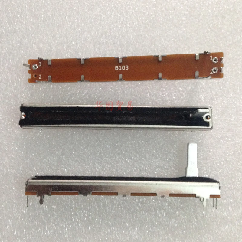 B10K прямой скользящий потенциометр SC6021 моно Длина 75 мм, Сопротивление: B10K = B103, Ручка высокая 15MMC, Если вы закажете 3 партии или больше, вы автоматически получите скидку.
