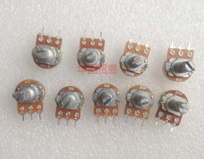 36 шт. (4 шт. * 9 значение) линейный потенциометр 15 мм вал с гайками и потенциометром