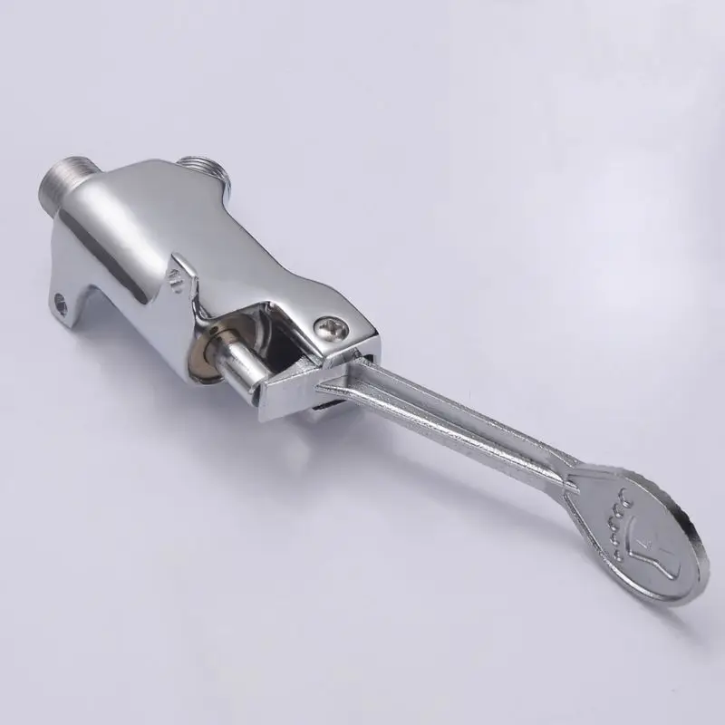 Вода и выключение воды с помощью ножного переключателя и регулирующего клапана завершены, не касаясь любой части руки