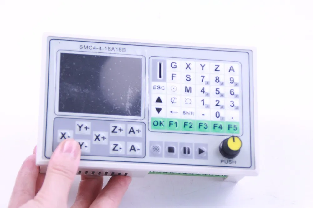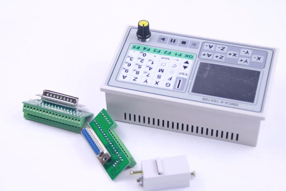 Основные характеристики:Настройки параметров: для обработки, контроль параметров, связанных с операциейРучное управление: может быть достигнуто вручную, пробежка назад к нулю программы, назад к механическому нулю, очистка координатных операций.Управление программой: программа может создавать, удалять, изменять, читать, сохранять, сохранять, автоматическую обработку, непрерывную и пауза.Внешнее Руководство: вручную определить различные внешние функции для облегчения использованияСвобода выбора функции ввода: ограниченный входной порт может удовлетворить различные потребности пользователяКомпоненты системыСистема ЧПУ состоит из следующих компонентов:Высокая производительность, с высокой скоростью 32-бит ARM ПроцессорЖидкокристаллический дисплей (Разрешение: 320 × 240)Вход/выход (10 мА 16 опто-изолированный вход s и 16 опто-изолированный выходной поток бака 500мА)Память программы обработки пользователей может быть реализована на любой TF карте памятиТехнические индикаторыСамая маленькая единица данных 0,0001 ммМаксимальный размер данных ± 99999,999 ммМаксимальная частота импульсного выхода 50 кГц (-одновременная ось 50 кГц)4 оси управления (X, Y, Z, A)4 оси связь оси и имеет микро-мульти-Многоосевые интерполяции линии управления впередВнешний вид и панель: Размеры: Длина 165, ширина 101, высота 50