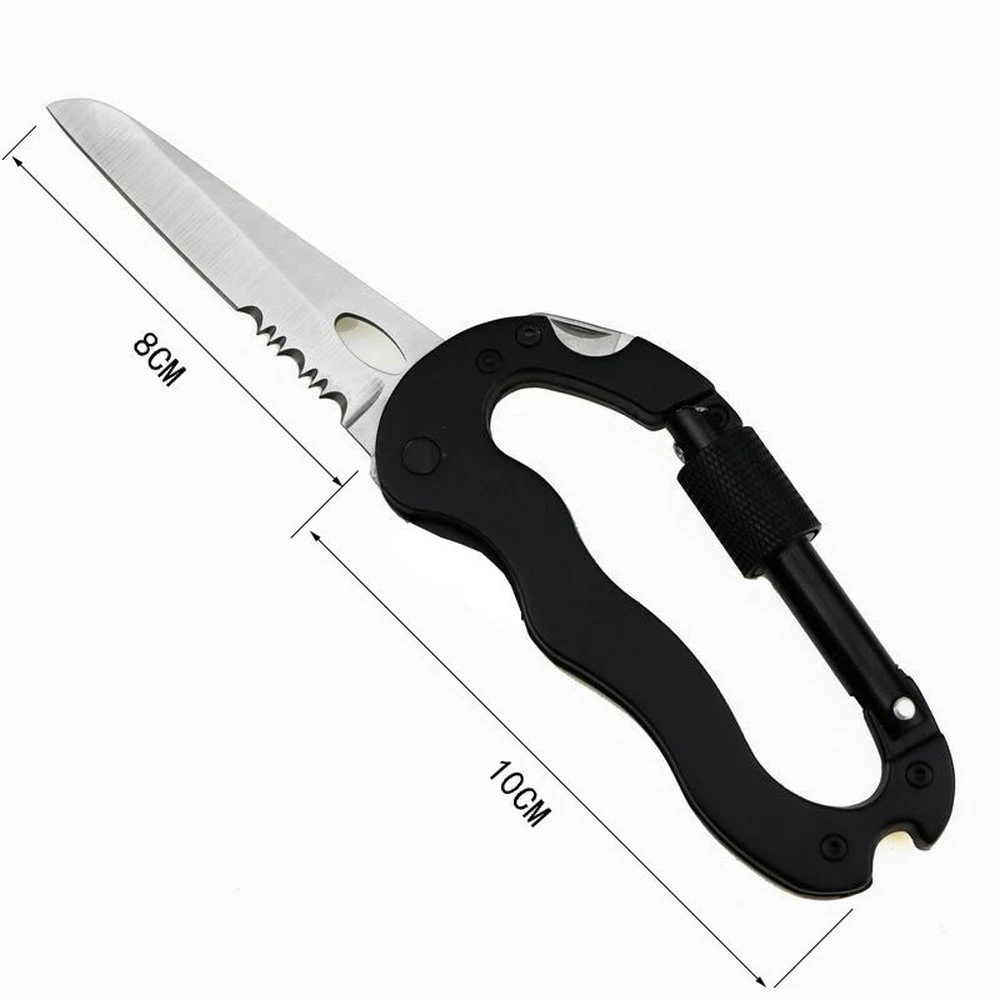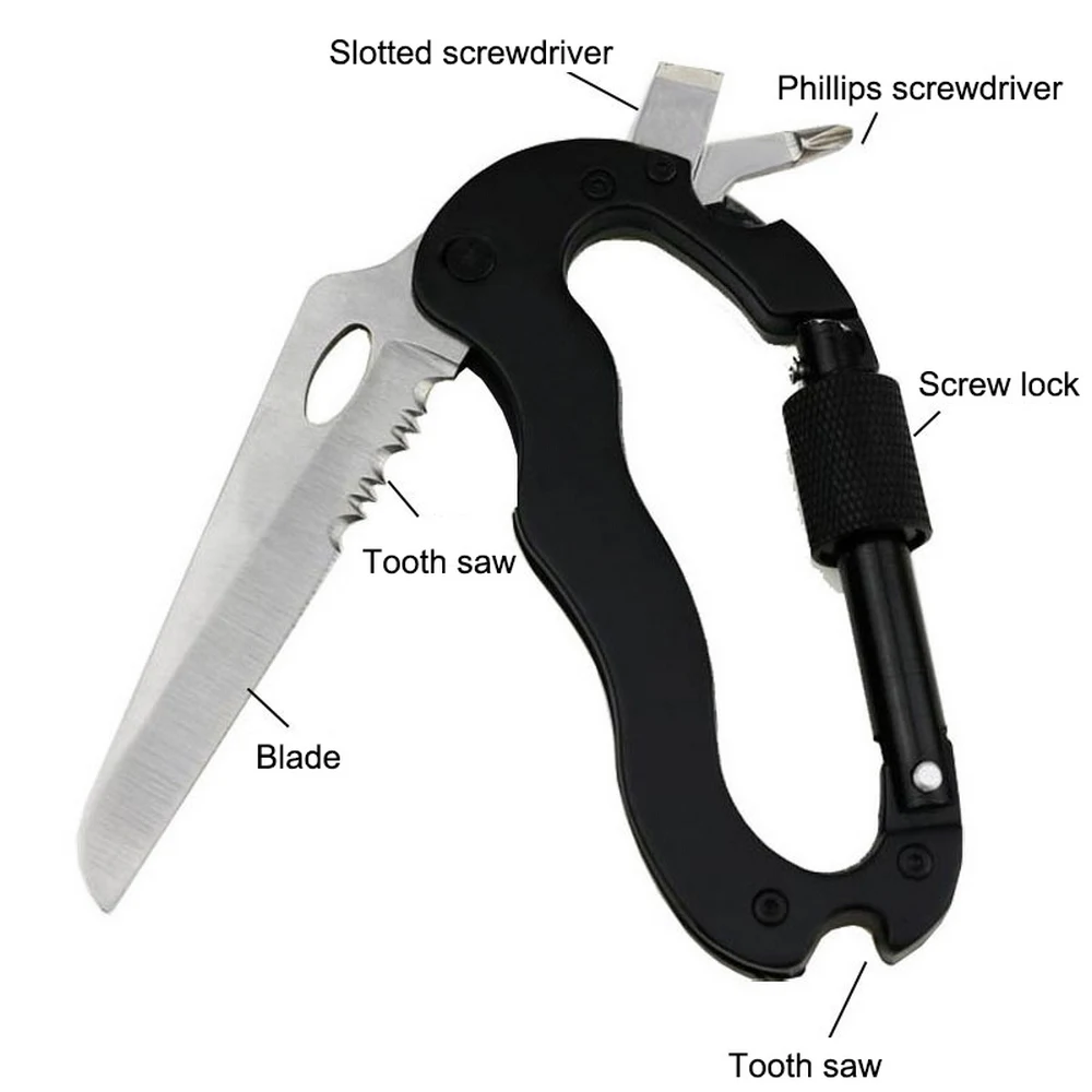 ★Многофункциональный брелок-карабин инструмент имеет 3 "частично-зубчатое лезвие, крестообразная отвертка, крестообразная отвертка.1 х Мульти Инструмент Карабин