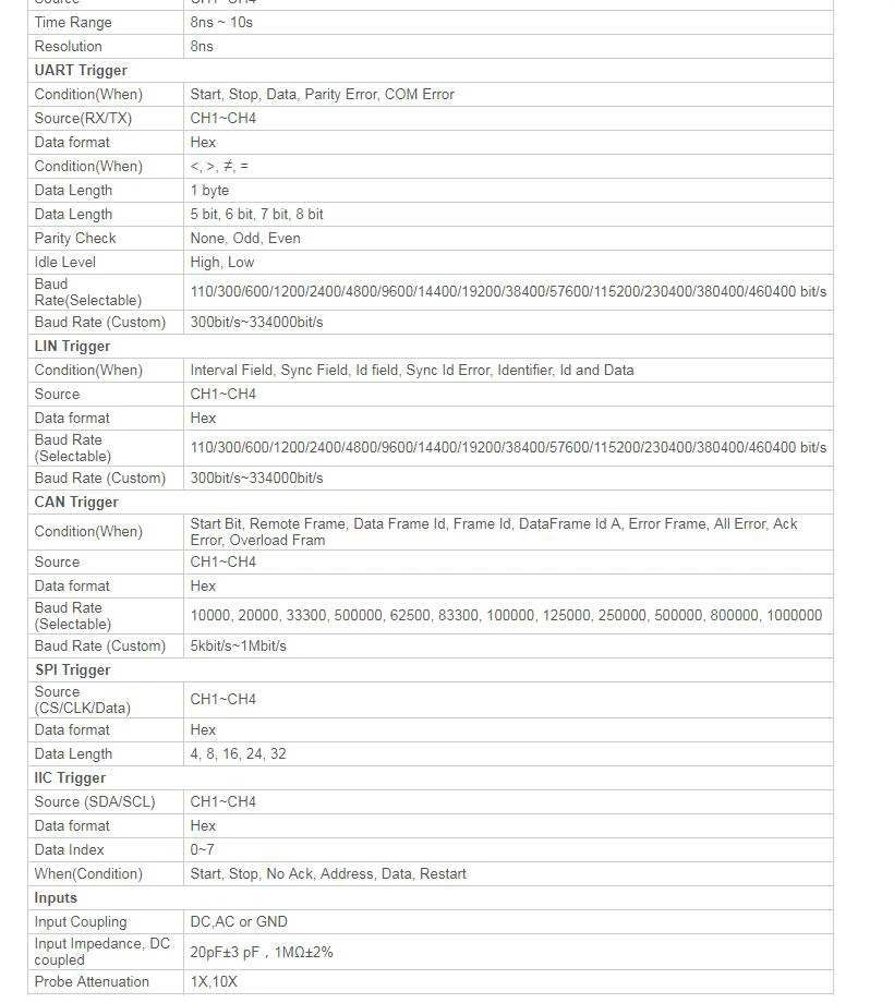 6. Серийное включение шины и декодирование, информация протокола шины может быть быстро и интуитивно отображена в форме таблицы.