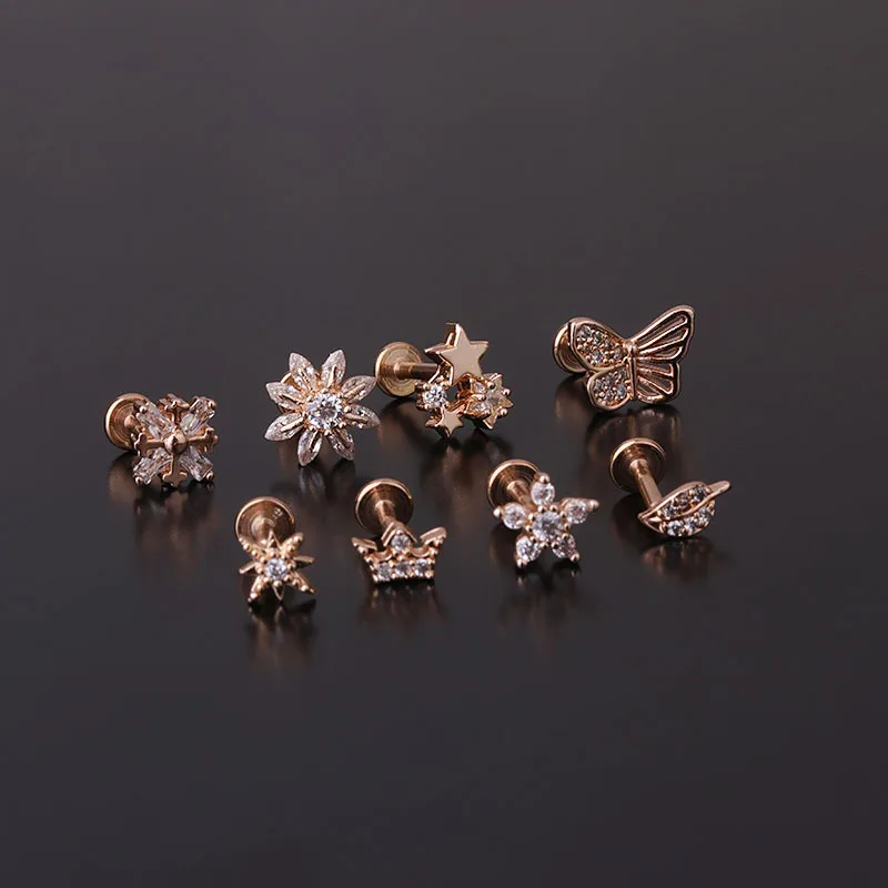 1 шт Диаметр 1,2 мм внутренний стержень пирсинг серьги для женщин 2021 тенденции моды ювелирные изделия милые юбки-пачки со звездочками лист циркон серьги-гвоздики