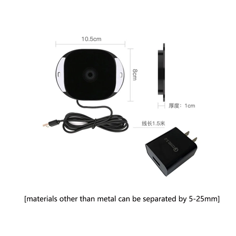 2. Расстояние между мобильный телефон и катушка может быть 5-25 мм, который не изготовлен из металла или магнитных материалов (таких как дерево, камень, пластик, акрил, стекло и т. Д.), И может достигать 30 мм без разделения