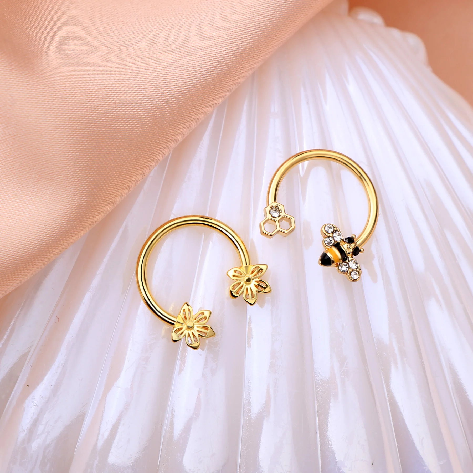 Женские серьги-кольца 16G Daith, сексуальные серьги с золотыми круговыми пчелами, CBR