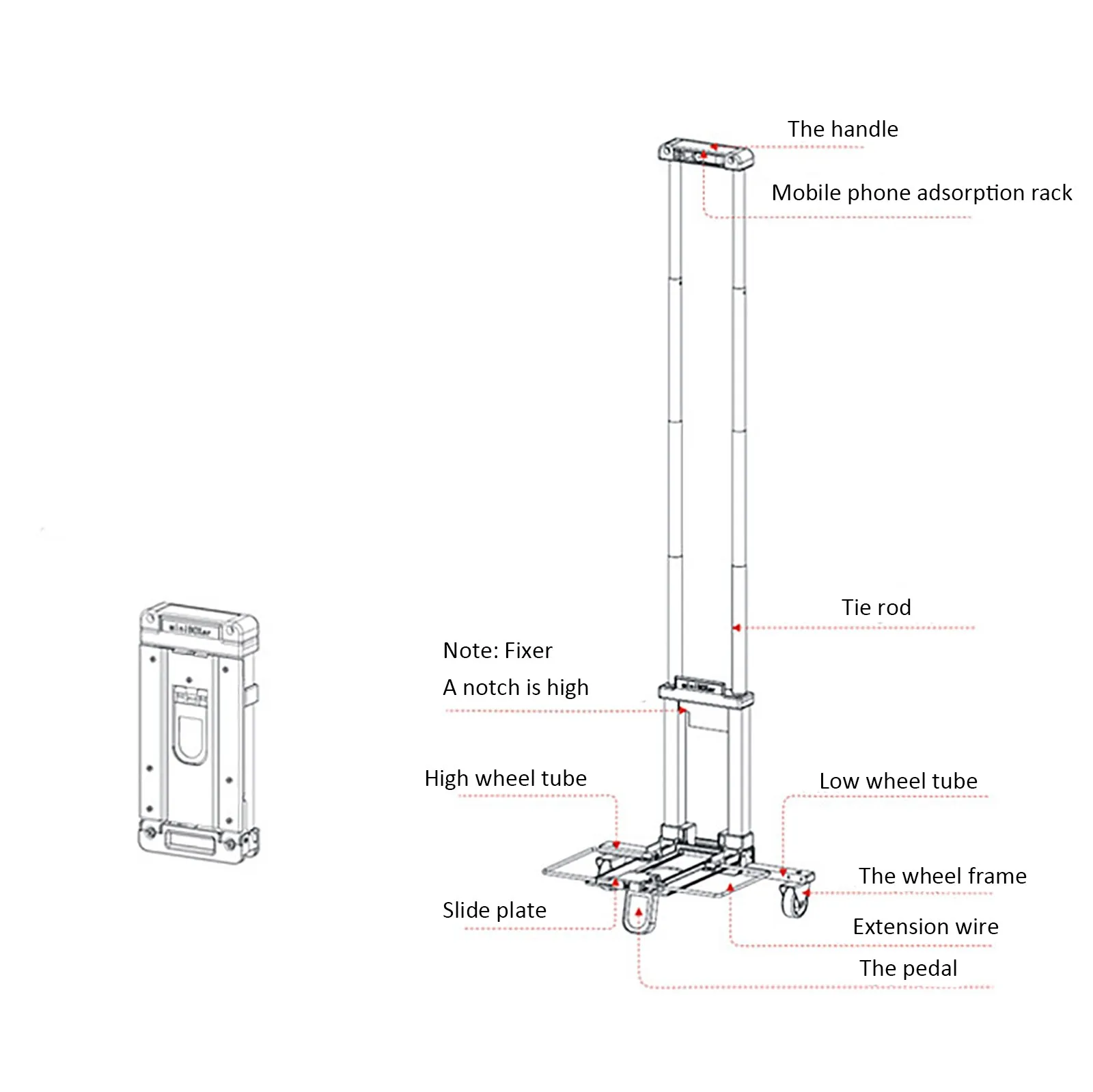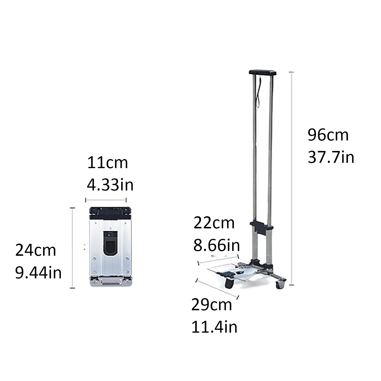 Мини-размер-Размер в сложенном виде тележки составляет всего 11x24 см. Размер в разложенном виде: 96х29х22см