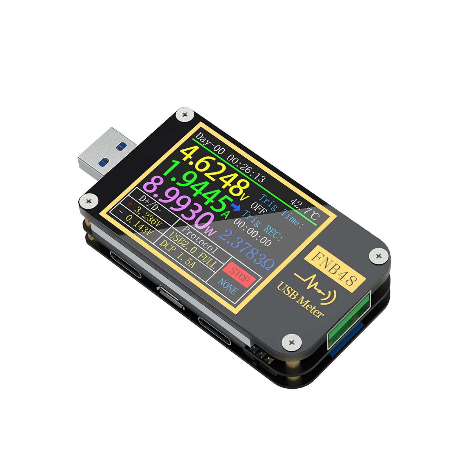 Этот инструмент является многофункциональным инструментом тестирования Емкости протокола, он интегрирован USB-A, Micro-USB, type-C интерфейс, с 1,77 дюймовым экраном высокого разрешения, с использованием внешнего 16-битного ADC, физический чип протокола PD, который может в реальном времени отслеживать напряжение, ток, мощность, емкость, протокол подзарядки, кривую формы волны и так далее, Давайте и попробуйте, это вас не подведет.