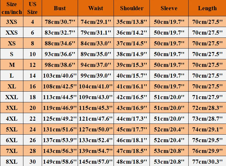 2. Разные стили имеют разные измерения, пожалуйста, ознакомьтесь с таблицей размеров ниже (обхват груди/талии/бедер) перед заказом. Спасибо.