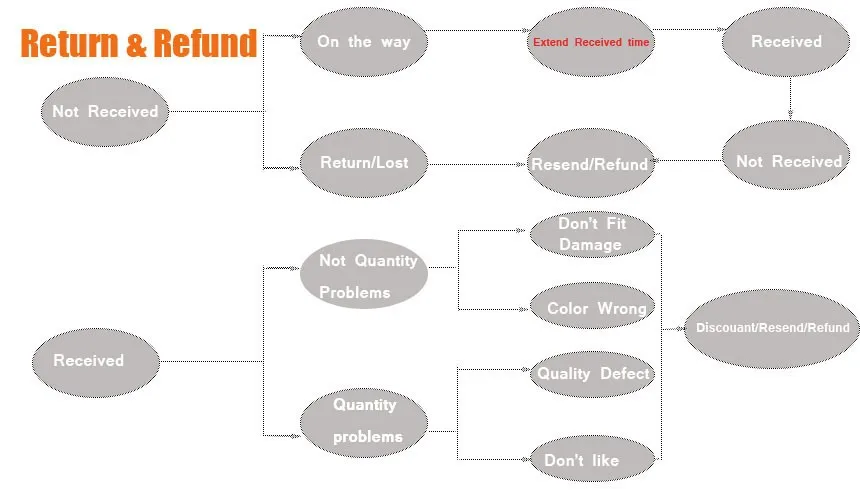 1) Проверьте информацию на сайте отслеживания. Информация по логистике обновляется через 3–7 дней после отправки. При возникновении проблем с отслеживанием отправления, свяжитесь с нами, прежде чем открывать спор2) Если у вас имеются какие-либо другие требования, просим отправить нам сообщение по электронной почте или обратиться к нам через торгового представителя.3) Проверьте целостность упаковки и содержимого.