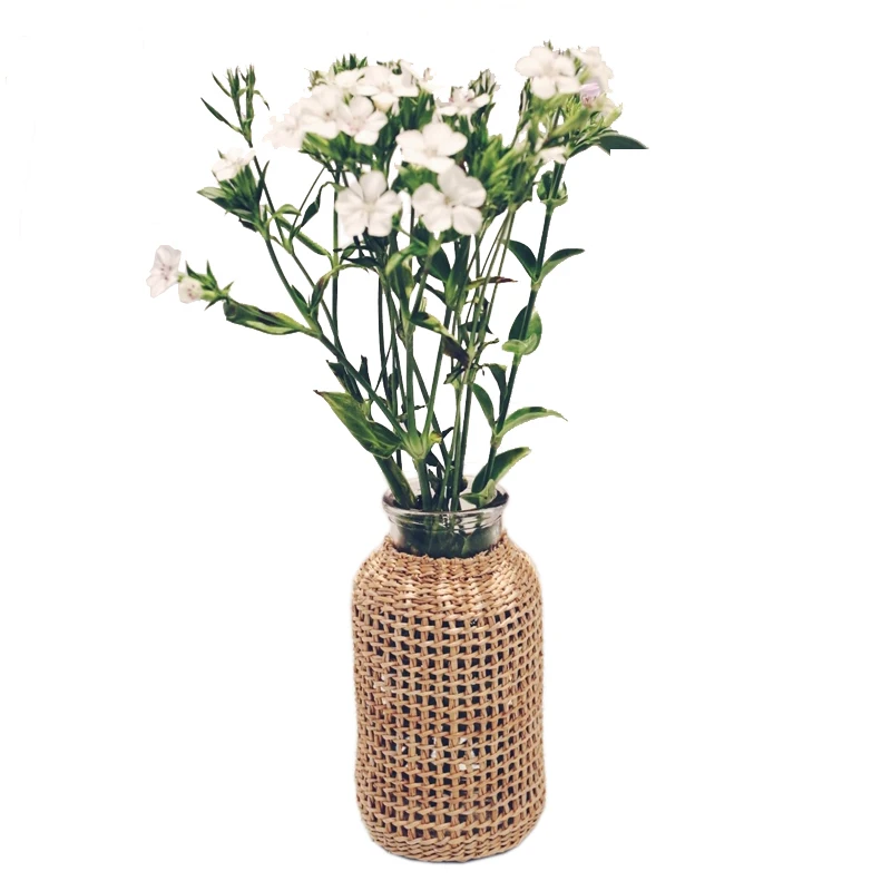 Соломенная стеклянная ваза для цветов, японский цветочный горшок в скандинавском стиле, креативная Цветочная корзина для водных растений