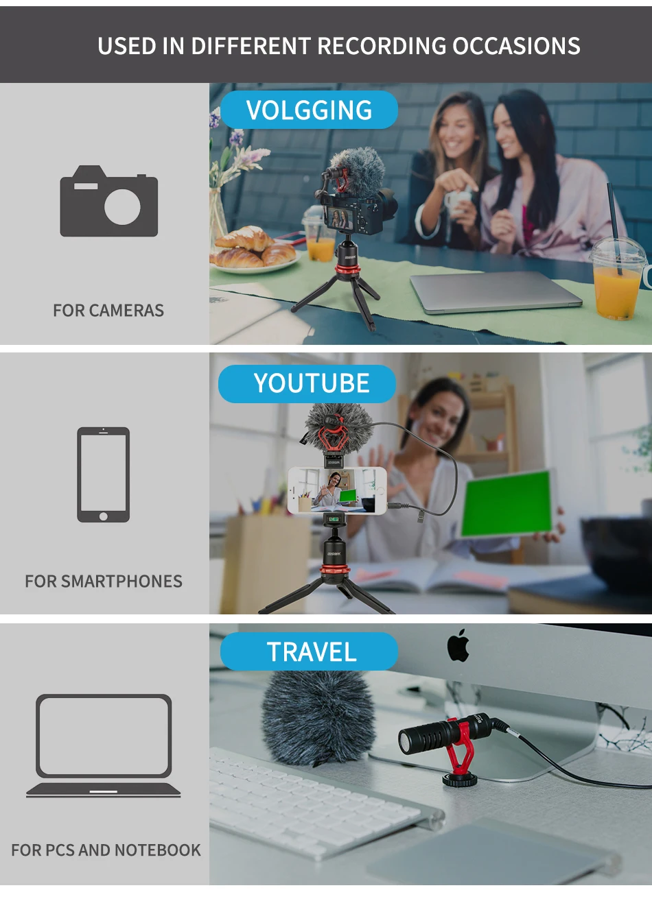 Как с кабелем TRS, так и с выходным кабелем TRRS, он может использоваться на смартфонах, камерах, видеокамерах, аудио-регистраторах, ПК и других аудио/видео записывающих устройствах.