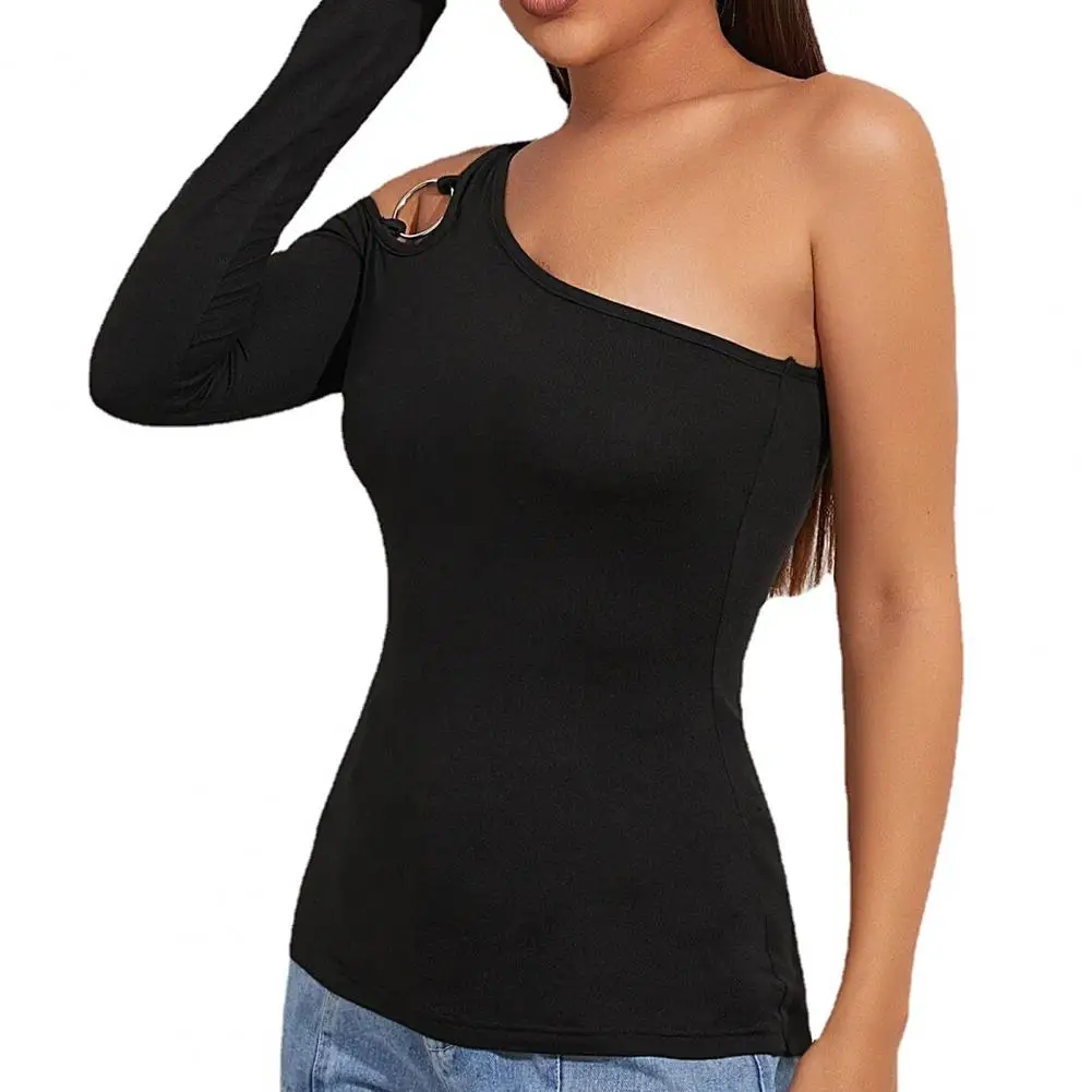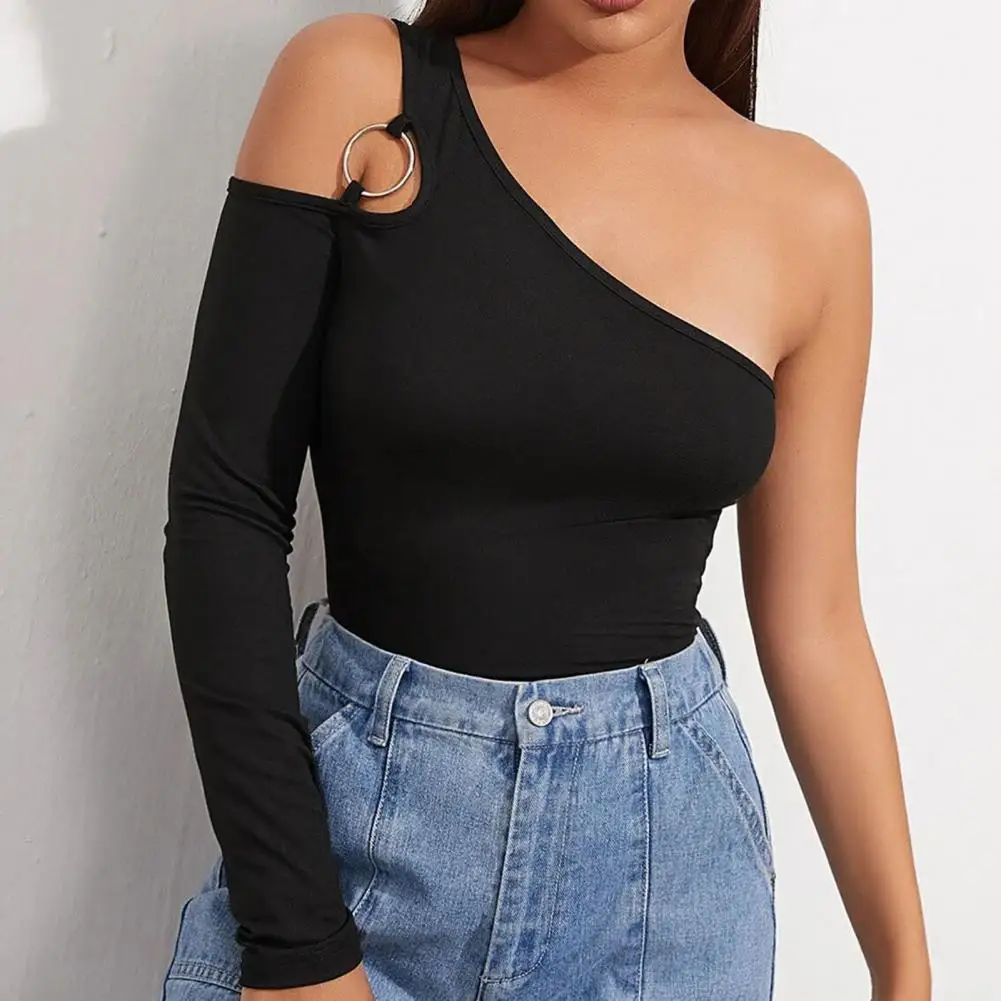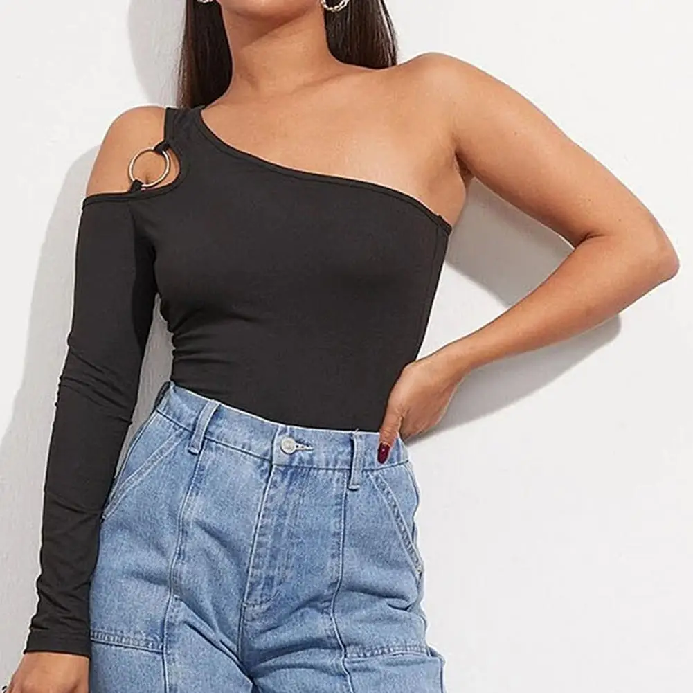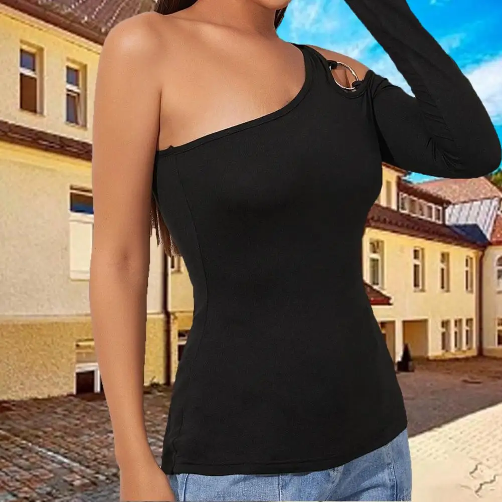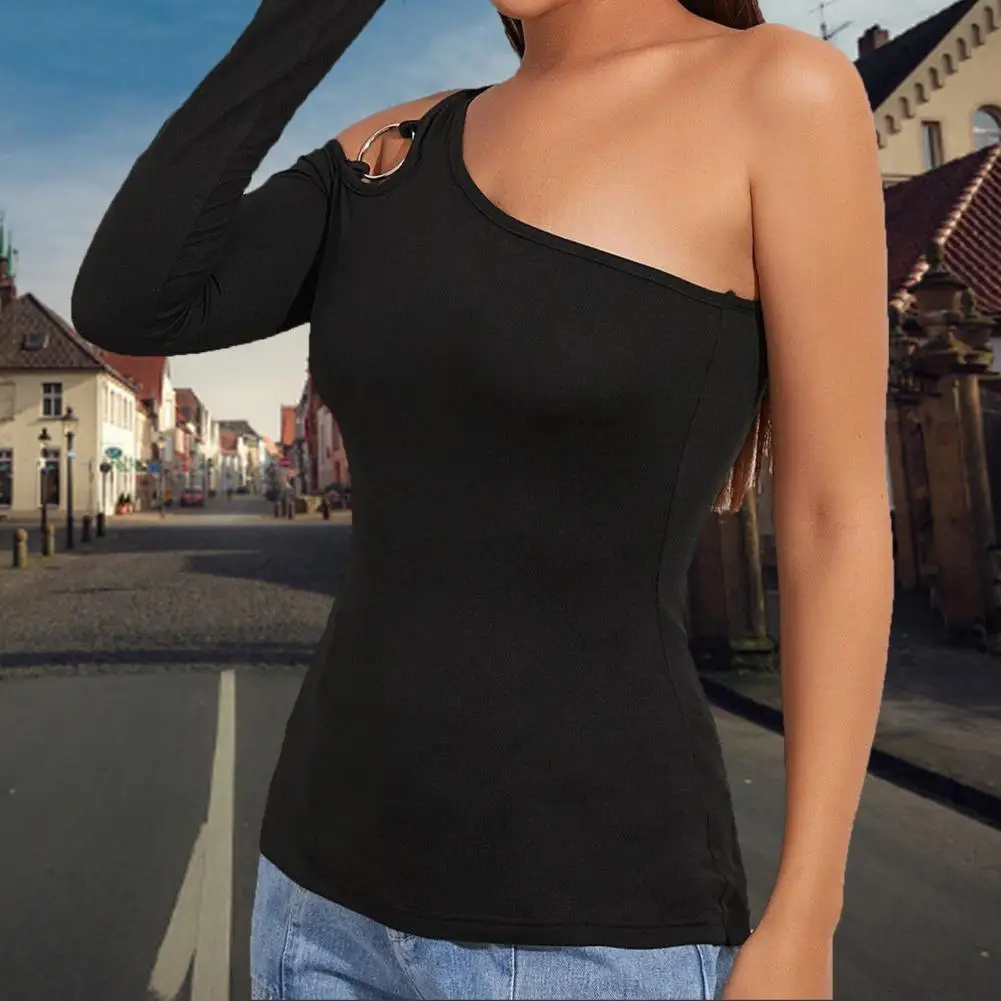 Женская Сексуальная Асимметричная футболка с вырезом и длинным рукавом без рукавов