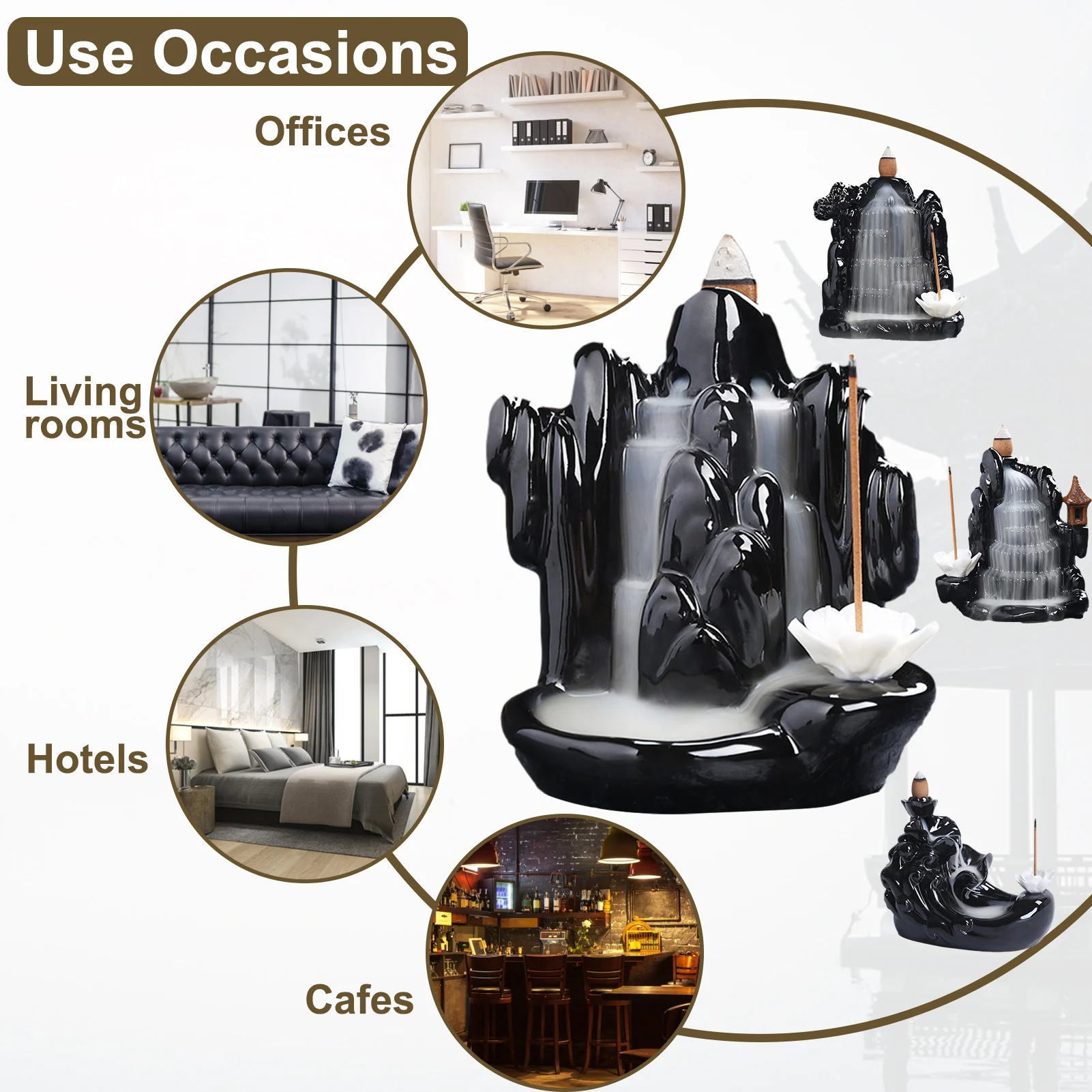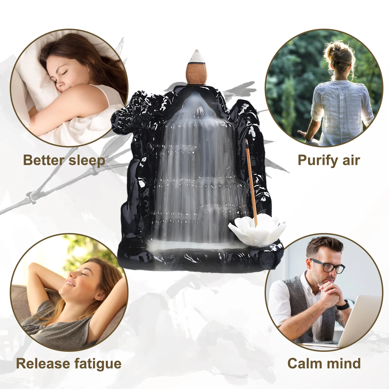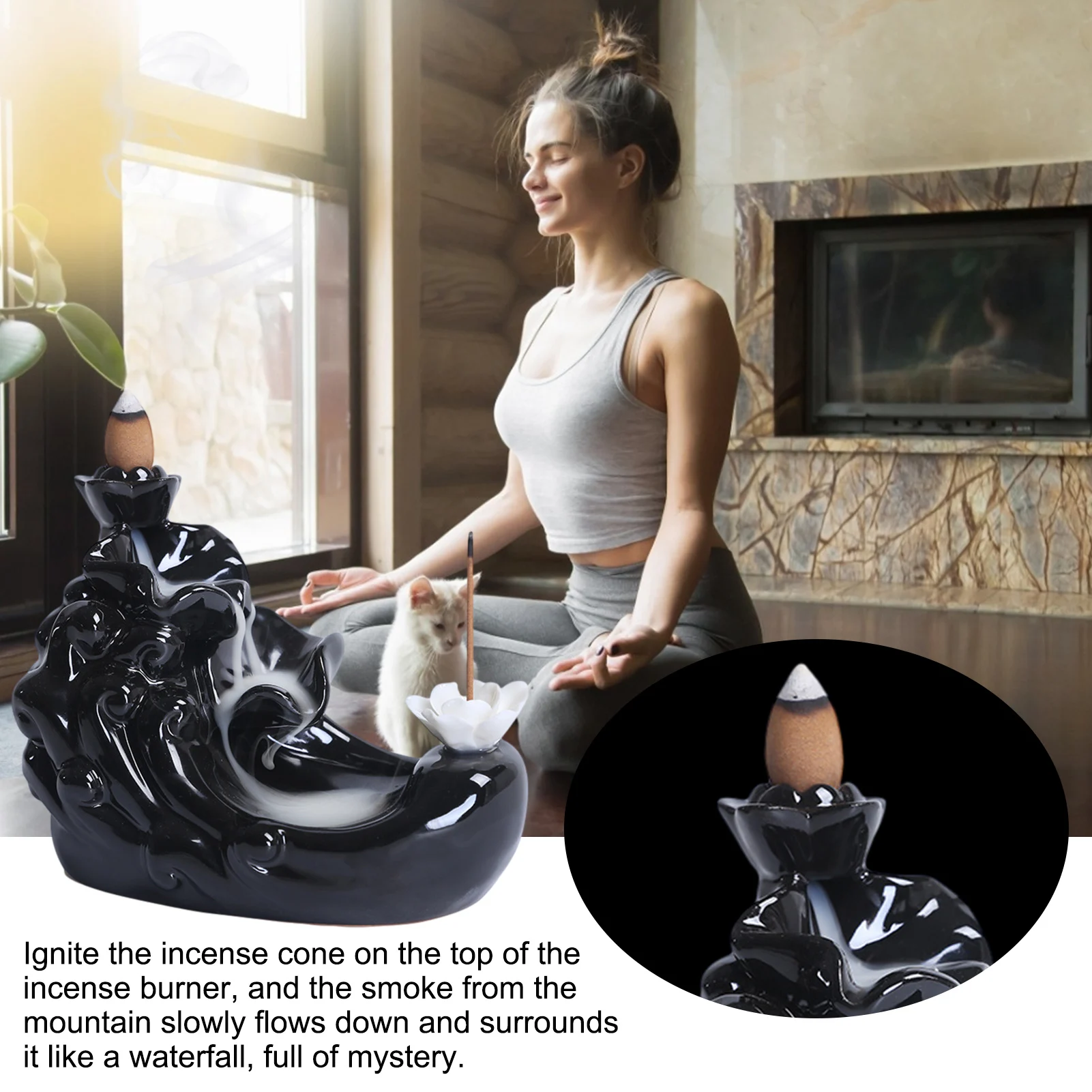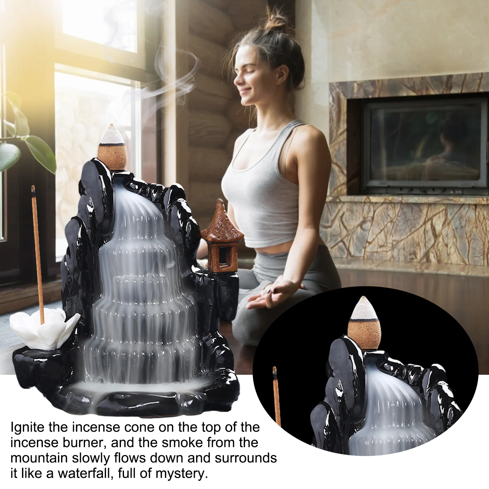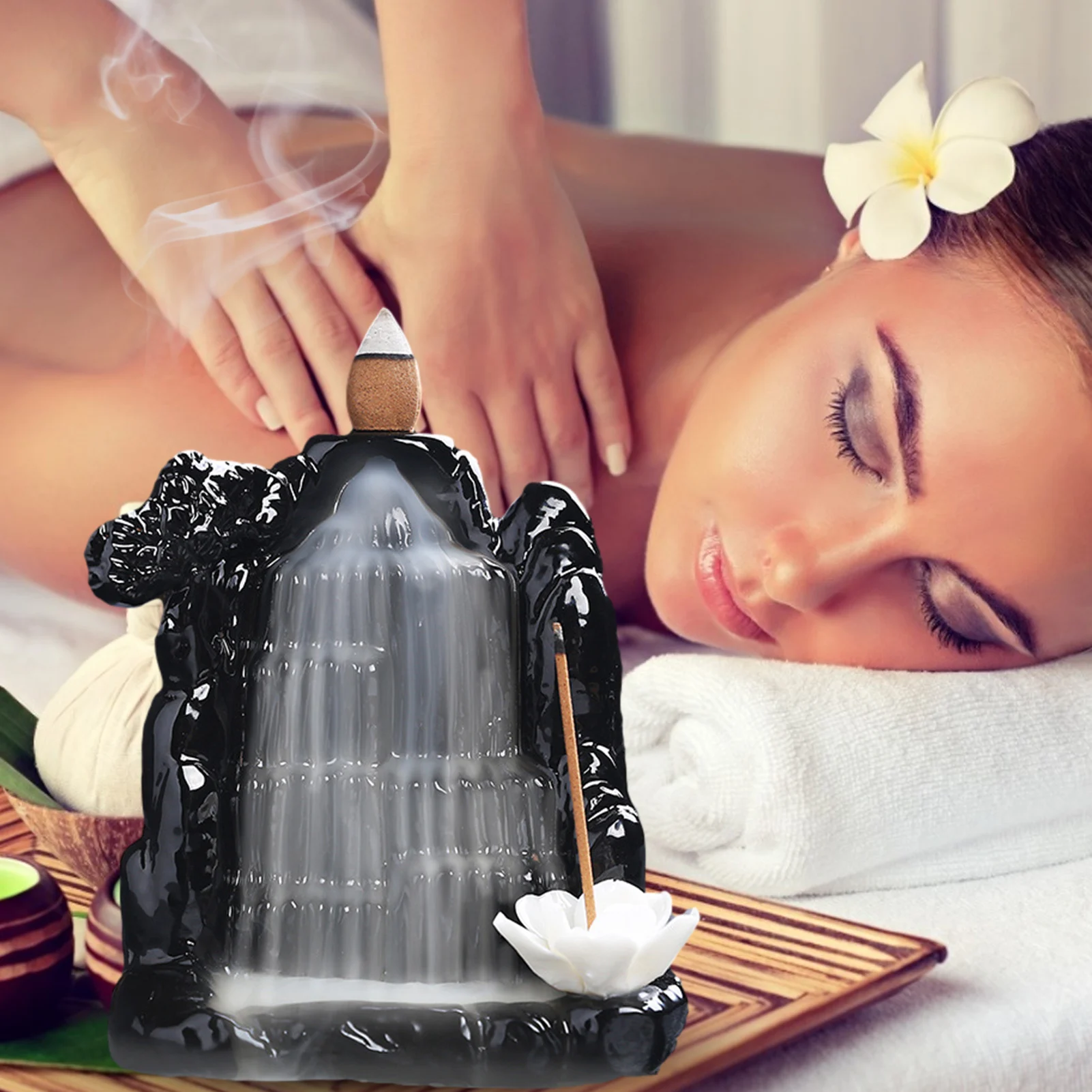 1. Курильница в форме водопада: Зажгите конус для благовоний на верхней части курильницы и дым