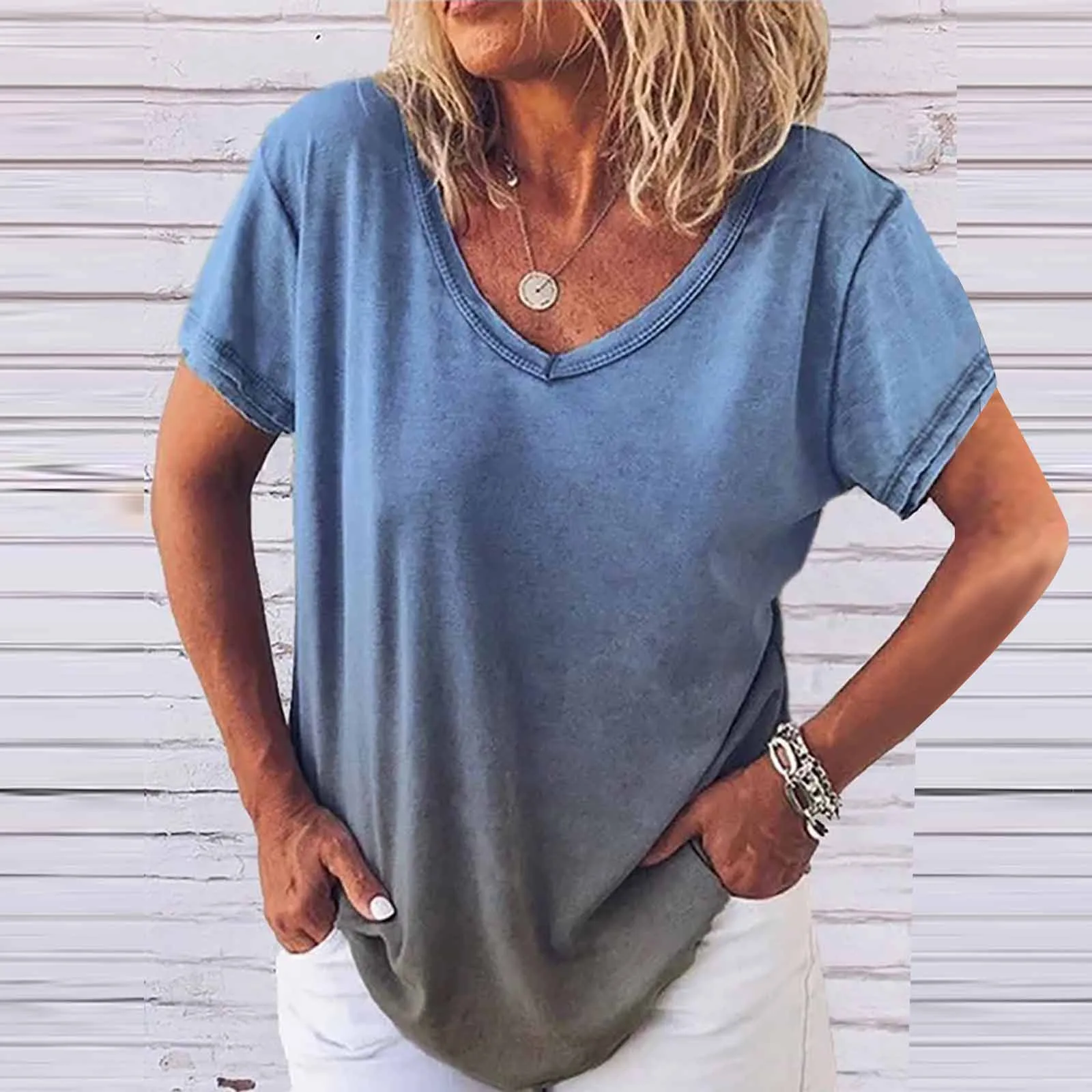 ● Рубашки для женщин с коротким рукавом и круглым вырезом для стильного и