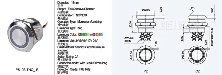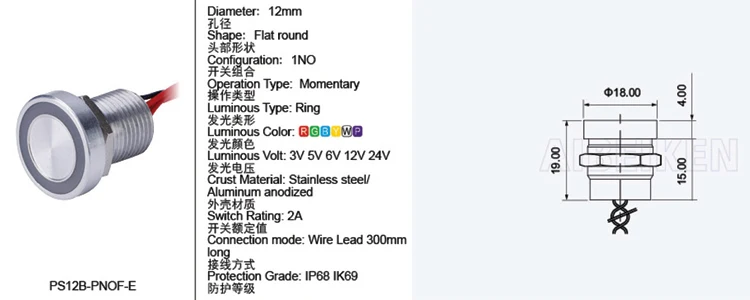 Aibeiken в наличии 12 мм 16 мм 19 мм металлический пьезо переключатель водонепроницаемый IP68 сенсорный выключатель без фиксации кнопочный переключатель