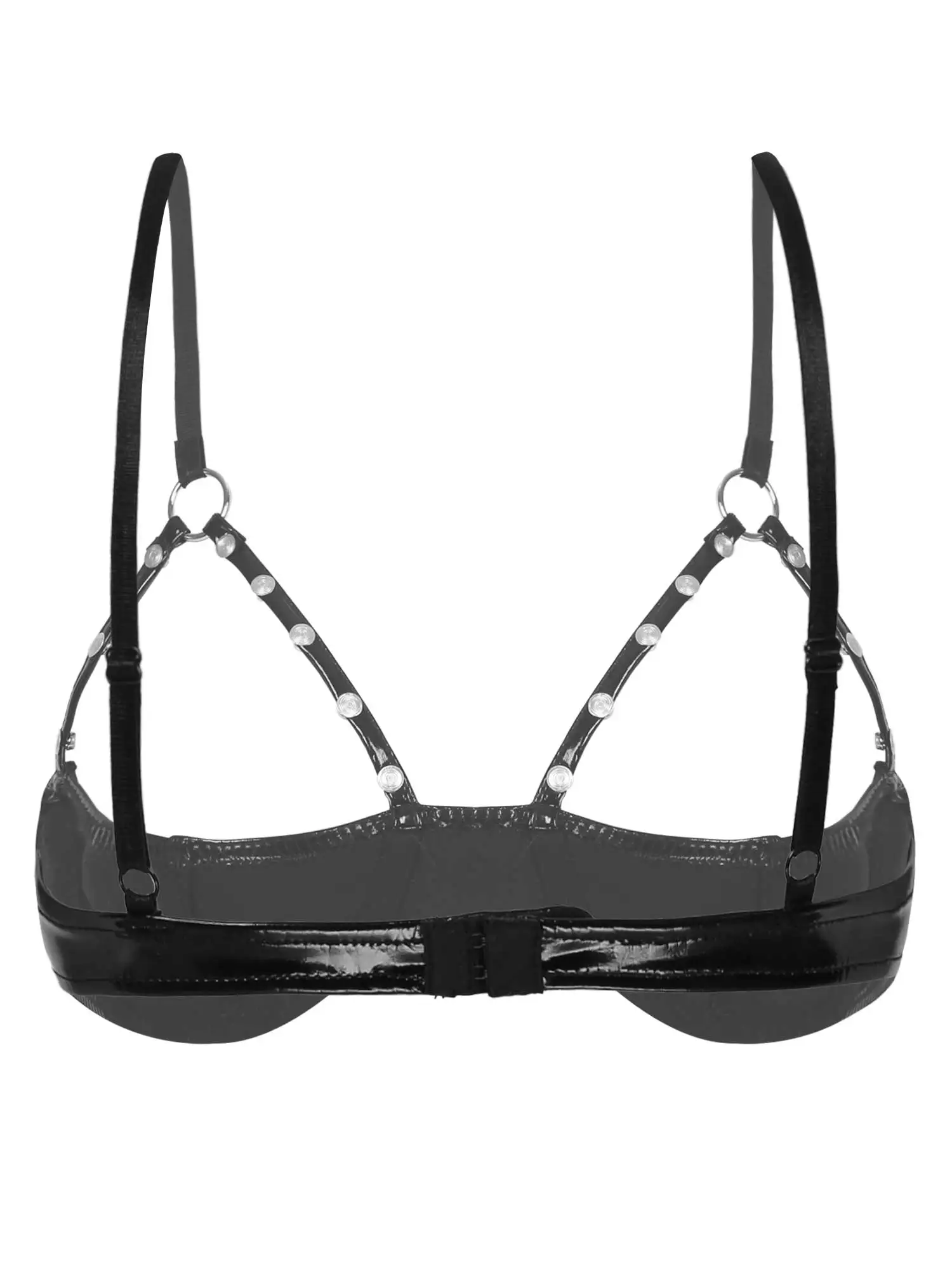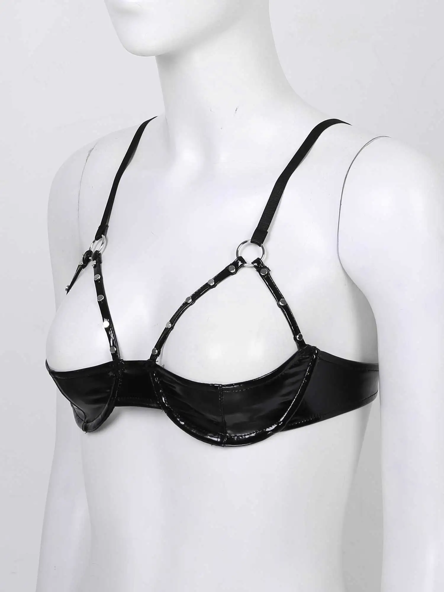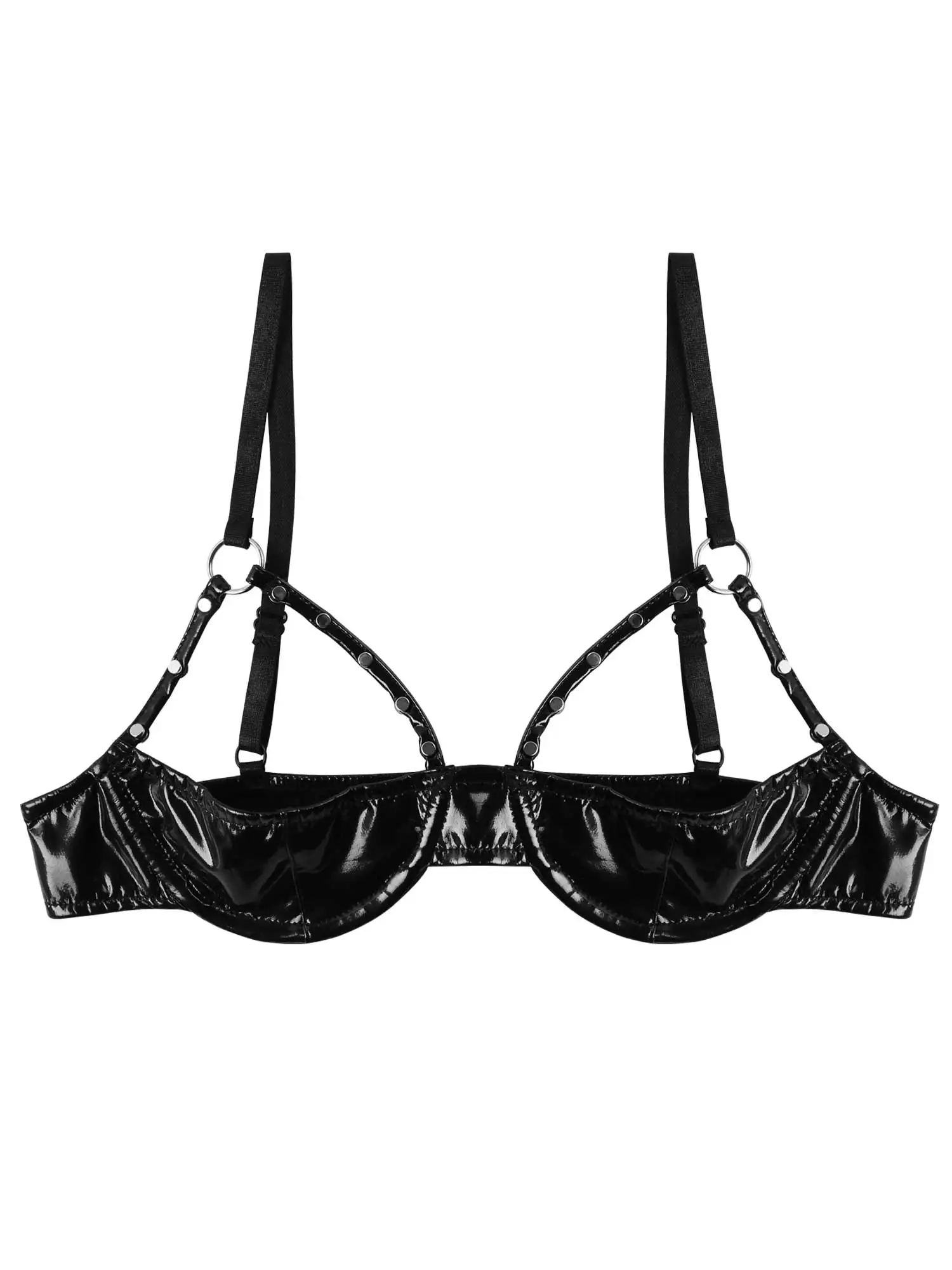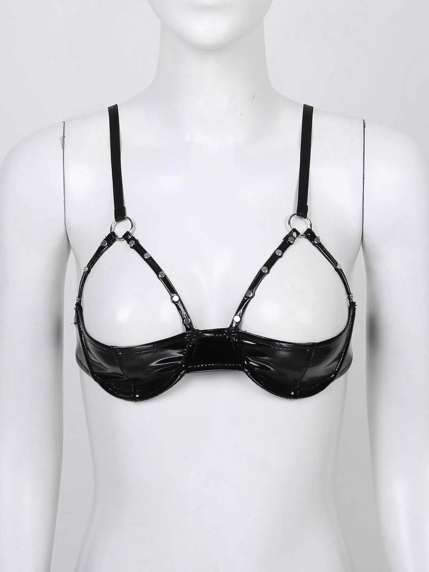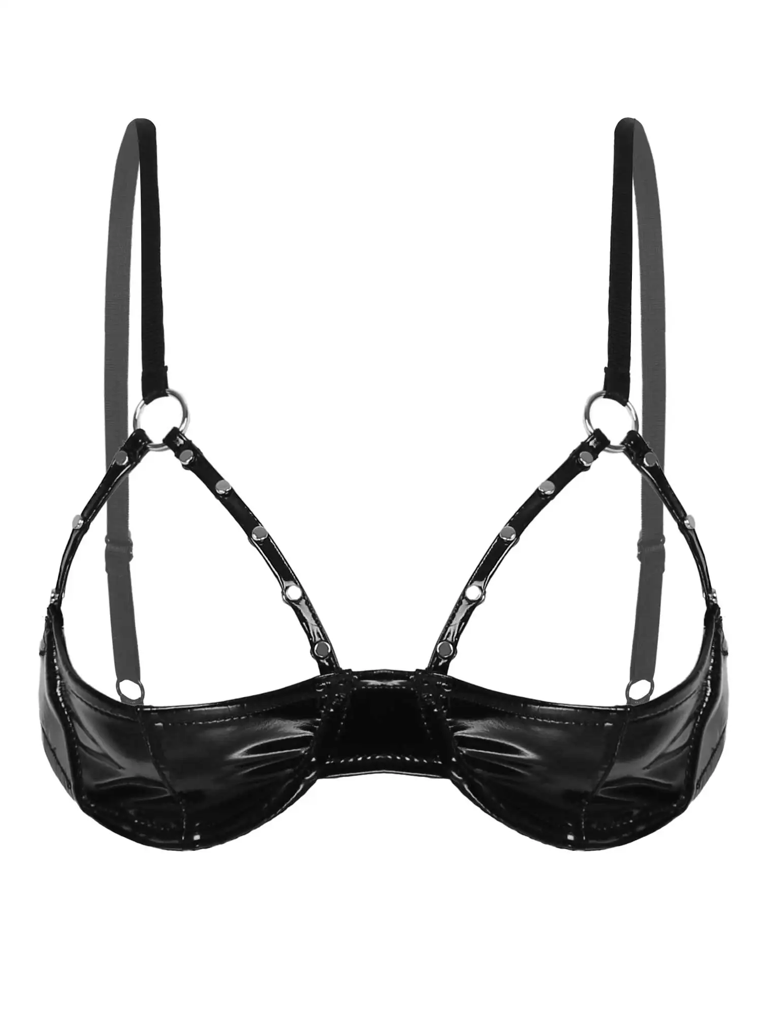 Сексуальный блестящий бюстгальтер из лакированной кожи.