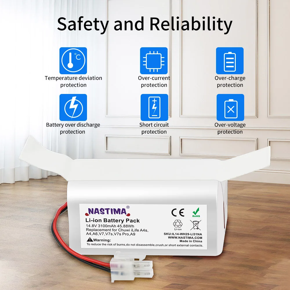 1.Литий-ионный перезаряжаемый сменный аккумулятор высокой емкости 3100 мАч делает работу вашего робота более продолжительной и долговечной, а время работы-около 2-3,5 часов на одной полной зарядке.