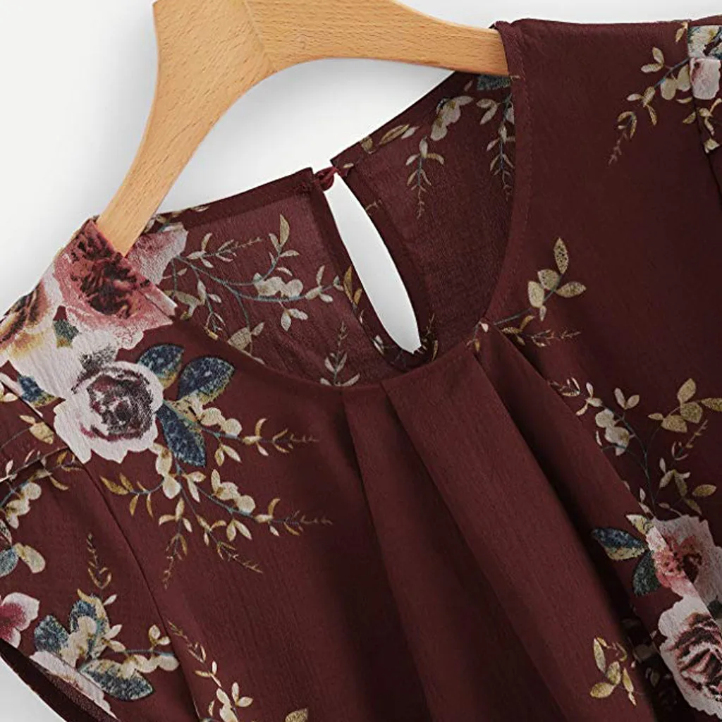 Женская Повседневная Базовая плиссированная блуза с круглым вырезом и коротким рукавом