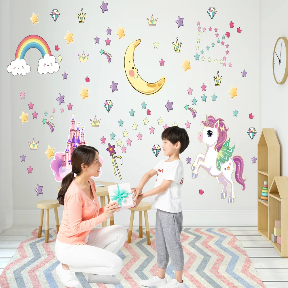 -Особенности продукта: сделай сам, съемный, водонепроницаемый, защита от плесени, светящийся, украшение для украшения, единорог. -Может использоваться на любой гладкой и чистой поверхности, такой как стена, дверь, окно, шкаф, потолок, ТВ фоновая стена, диван фоновая стена и т. Д. -Наклейки не должны повторяться и не должны использоваться на грязных или грубых поверхностях. -Применимое пространство: детская комната, семейная спальня, гостиная, столовая, ванная комната и т. д. -Компоновка продукта компактный размер, серии DIY позволяют вам полностью играть в неограниченный творческий потенциал, свободный макет формы и положения. Вы можете отделить узоры ножницами. -При получении продукта, выставляйте продукт наружу, насколько это возможно, чтобы поглощать светильник. Чем дольше светильник длится, тем ярче становится ночь. -Светящиеся наклейки, которые украшают ваш дом и делают ваш дом более романтичным, вы этого заслуживаете.