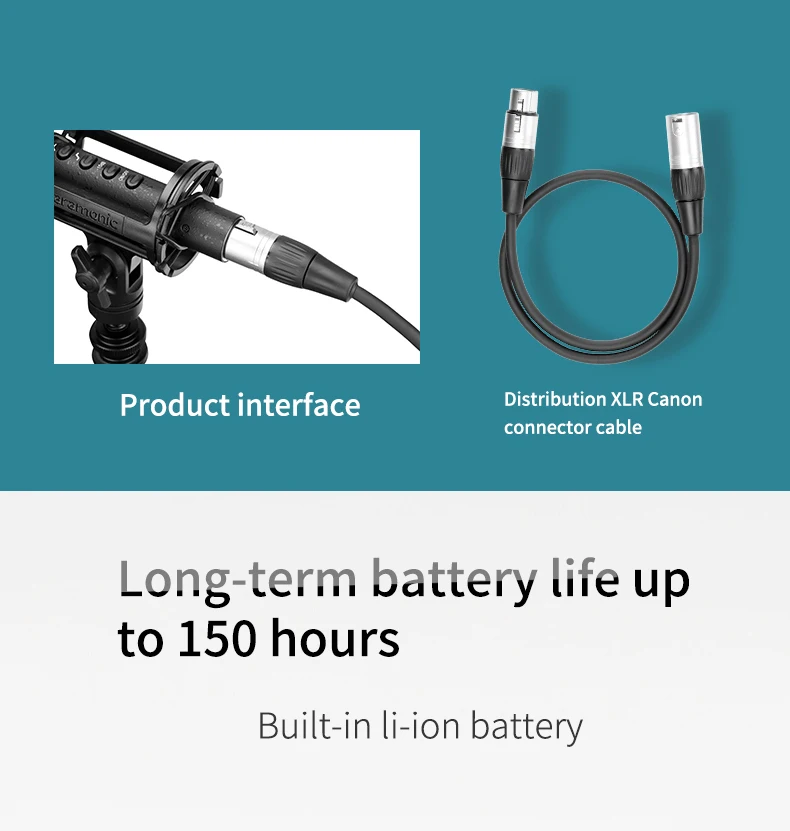 Поставляется с поролоновым ветровым стеклом, микрофонным зажимом и амортизирующим креплением, кабелем XLR и зарядным кабелем MicroUSB
