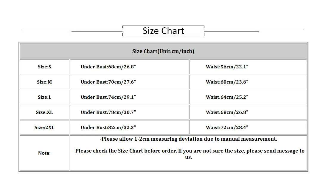 | Размер: 2XL | Под грудью: 82 см/32,3" | Талия: 72См/28,4" |