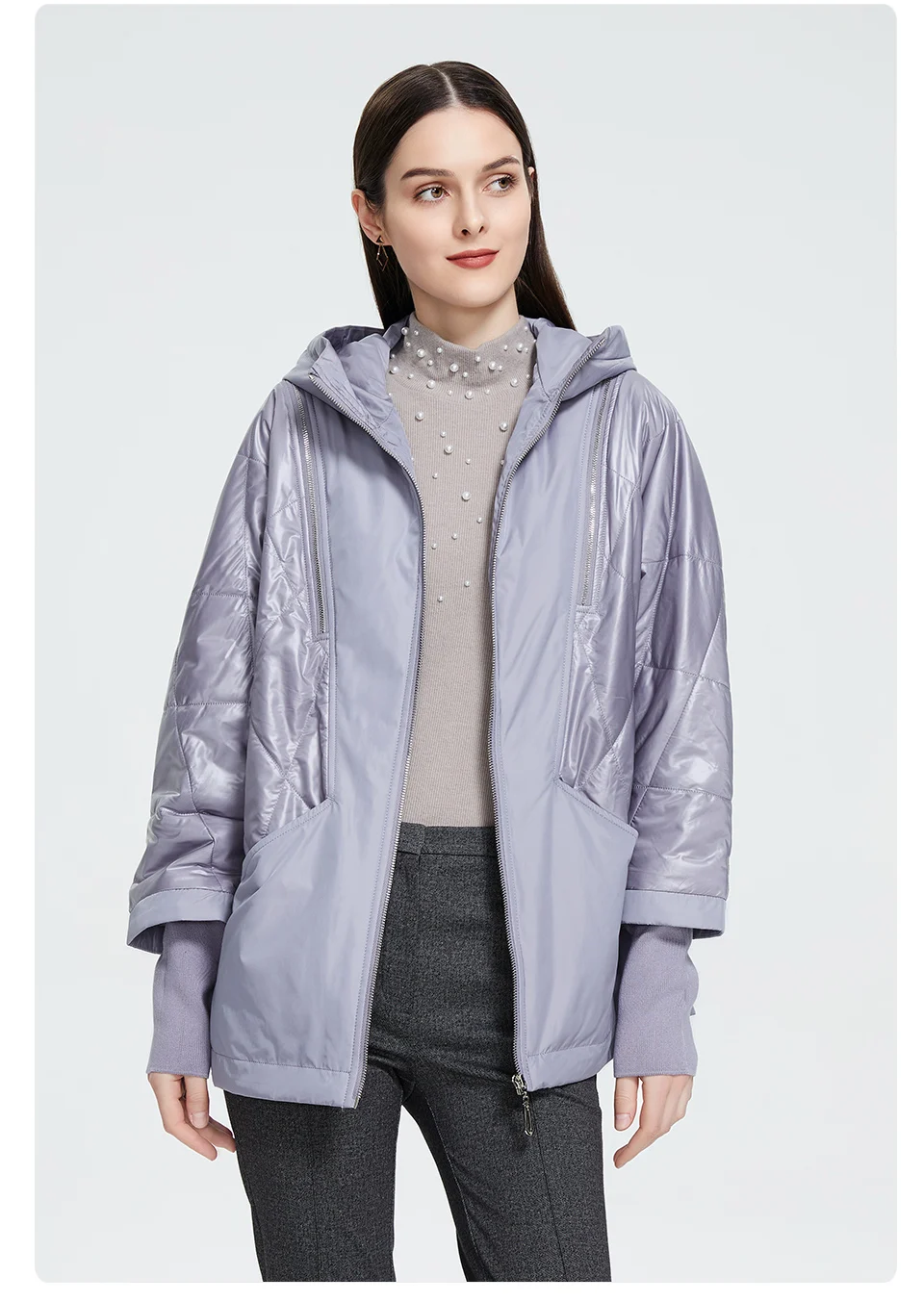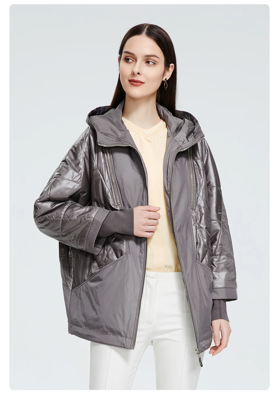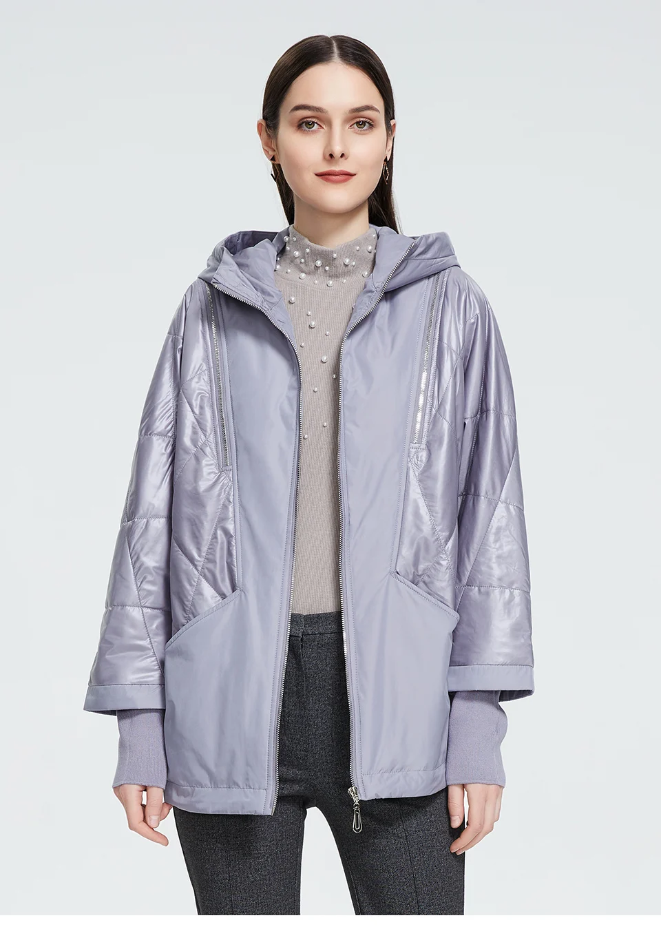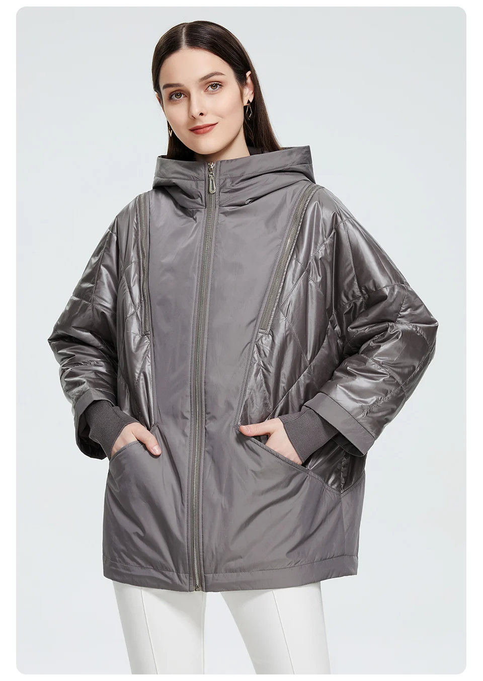 Женский пуховик с большим меховым воротником Ms. Parker теплая хлопковая куртка