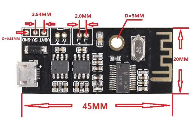 Размер печатной платы: 23*16*2,5 мм (длина, ширина и высота)