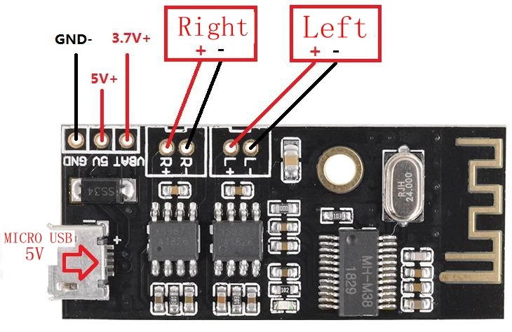 3. Этот продукт имеет собственную двойную схему усилителя мощности 5 Вт и не должен быть подключен к другому усилителю! Выходы двух усилителей не могут быть подключены параллельно или отрицательные полюса могут быть соединены вместе, в противном случае чип усилителя мощности может быть поврежден.