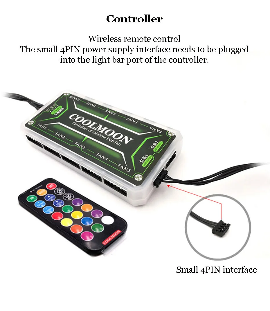 Небольшой 4-контактный интерфейс, светильник вая панель должна использоваться с контроллером COOLMOON Световая панель ARGB может быть напрямую подключена к интерфейсу материнской платы 5 в ARGB для использования
