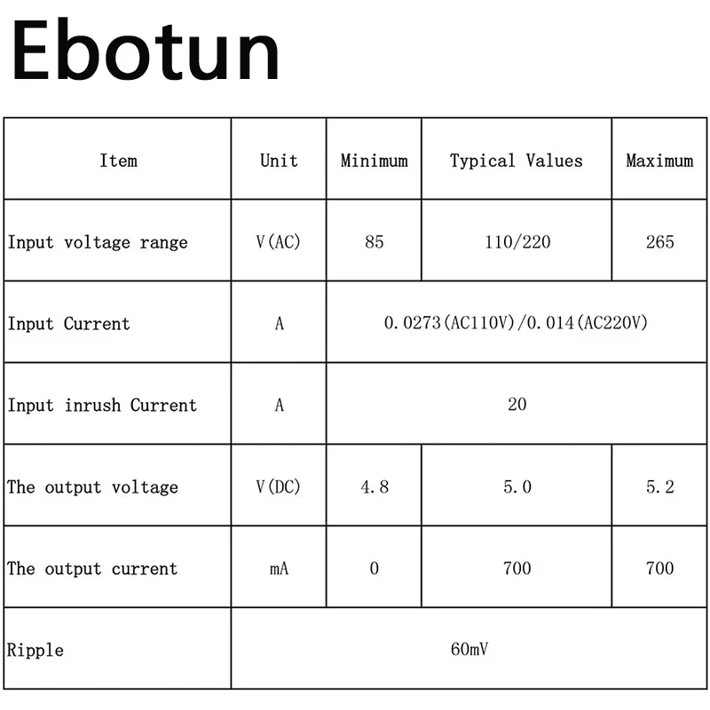 Выход напряжение: DC5V (± 0,2 V)