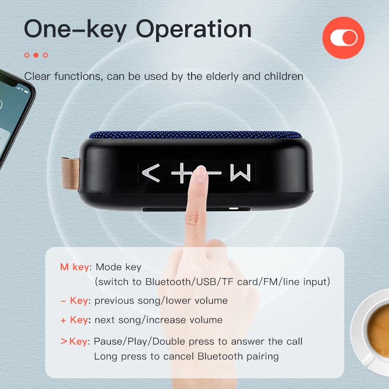 Описание: (1)100% абсолютно новое качество: портативный динамик в основном изготовлен из экологически чистого пластика ABS, который отличается прочностью и ударопрочностью. (2) легко носить с собой: компактный размер и удобное плетеное кольцо позволяют легко получить высококачественный звук на ходу. (3) многофункциональный: он широко поддерживает Bluetooth/USB/tf-карту и имеет функцию fm-радио. (4) широкий спектр применения: он очень подходит для использования на кухне, общежитии, автомобиле, ванной комнате и в следующих вечерние дни, подходит для кемпинга, путешествий, пеших прогулок и т. д. Характеристики: Тип: bluetooth-динамик Цвет: черный, синий, серый, красный, зеленый Напряжение зарядки: 5 В постоянного тока/500 мА · ч-1000 мА · ч Материал коробки: АБС-пластик для защиты окружающей среды Диапазон частот FM: 87,5-108 МГц Резонансная частота: 150 ~ 18000 Гц (-3 дБ) Мощность динамика: 3 Вт Аккумулятор: встроенный аккумулятор (перезаряжаемый) 300 мАч Метод управления: Кнопка/Bluetooth Размер изделия: 11,2*8*3,5 см Вес: 200 г Посылка включает в себя: 1 * динамик 1 * зарядный кабель 1 * Инструкция по эксплуатации