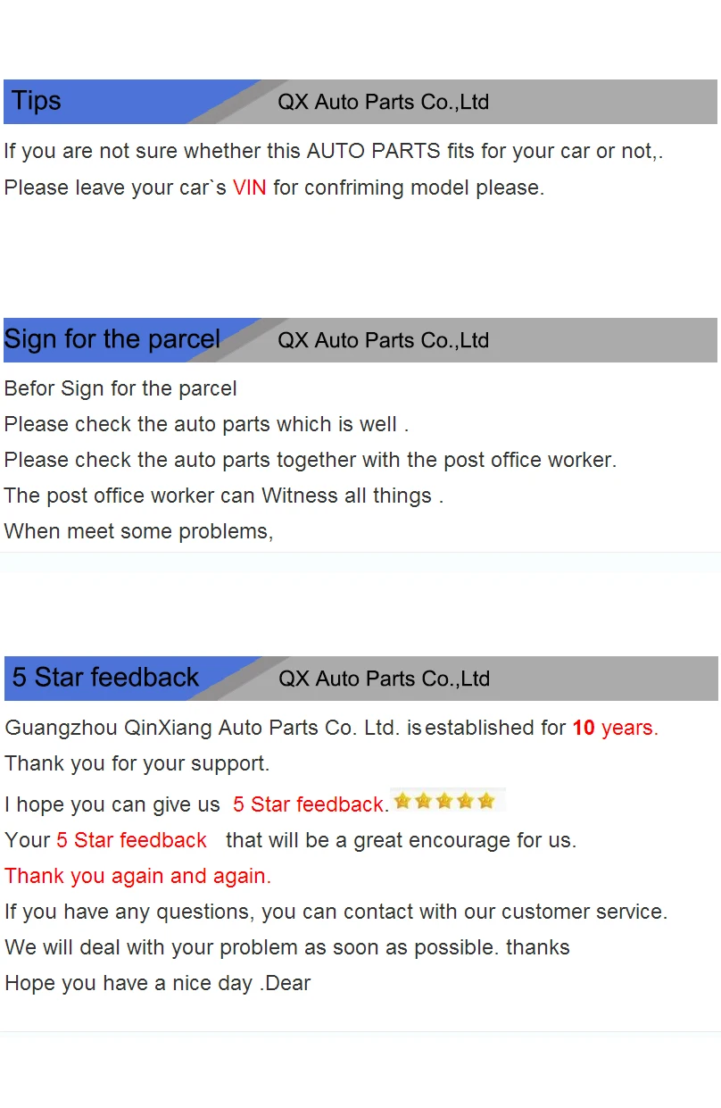 Магазина GZQX car parts Store работает с 27.01.2015. его рейтинг составлет 84.67 баллов из 100. В избранное добавили 3805 покупателя. Средний рейтинг торваров продавца 4.4 в продаже представленно 4227 наименований товаров, успешно доставлено 4603 заказов. 1624 покупателей оставили отзывы о продавце.