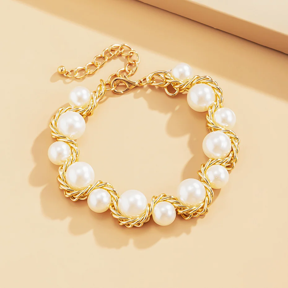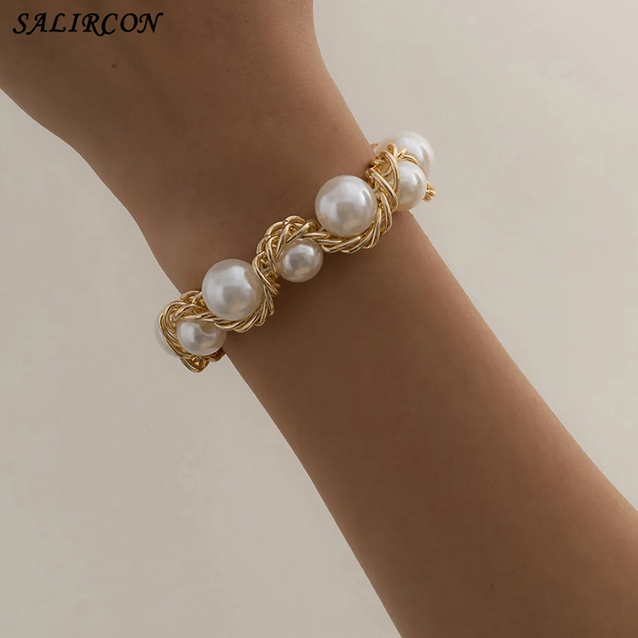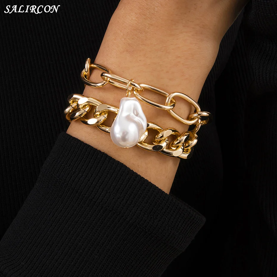 Salircon Kpop браслет с имитацией жемчуга на руку, панк, очаровательный золотой цвет, браслет для девушек, пара браслетов, Женские Ювелирные изделия, подарок 2021