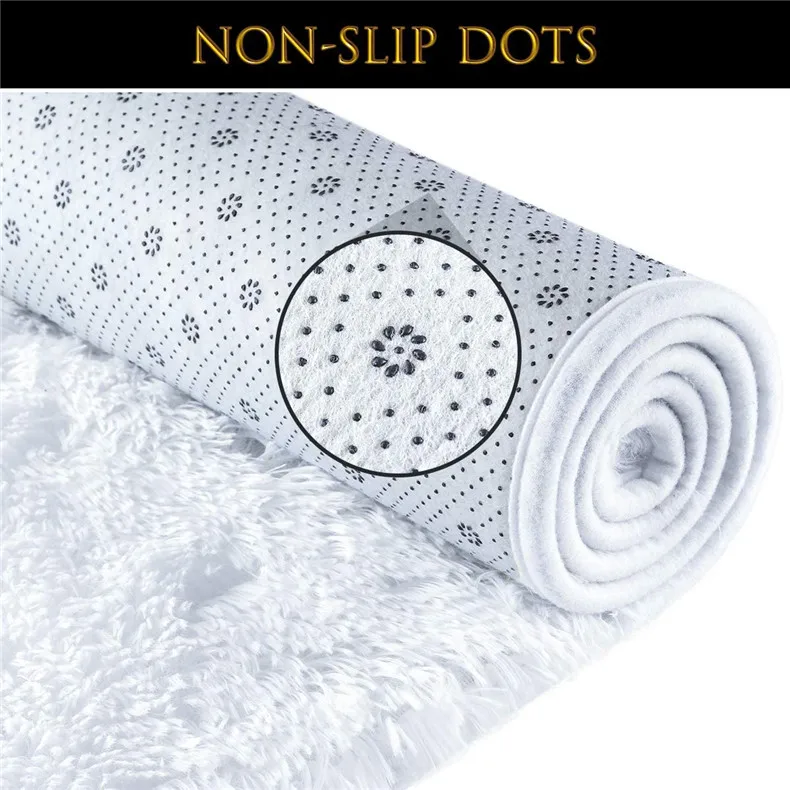 [Высококачественный искусственный мех] Этот пушистый коврик имеет верхний слой из мягкого бархата, С улучшенным внутренним слоем губки, который приносит вам мягкость ощущение, как выходить на облако и защищает пальцы ног от холодного пола, а также противоскользящие пластиковые пятна на дне.