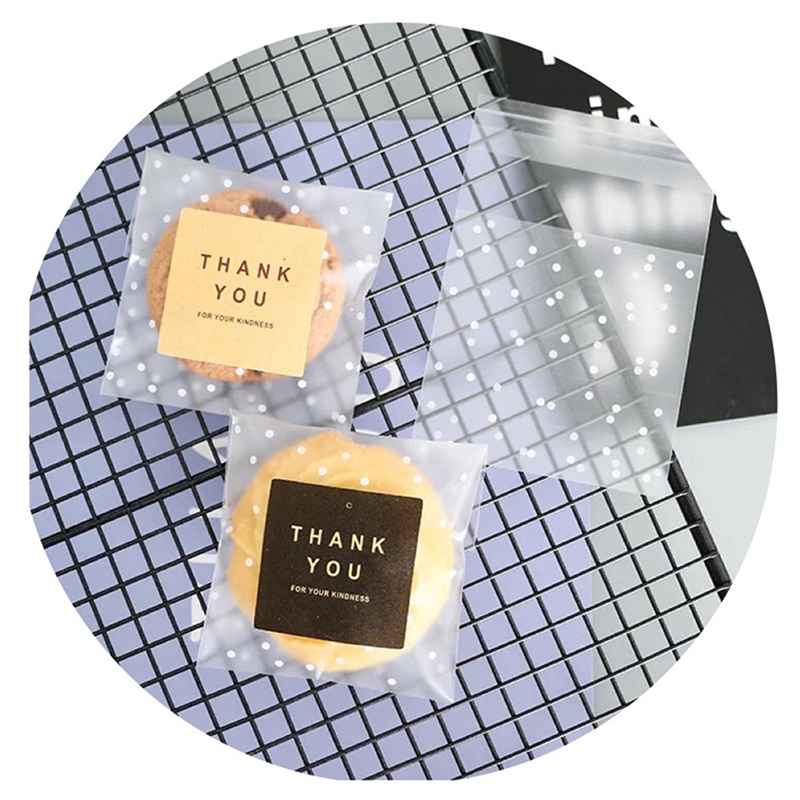 100pcs/lot Transparent Dot Cookie Packaging Bags Self-adhesive Plastic Biscuit Bag Wedding Candy Bags Gift Bag